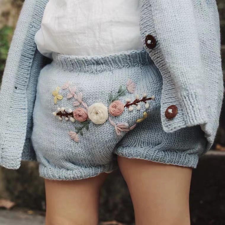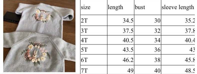 ・デザイン: 手刺繍ラビット/お花モチーフ、丸首、長袖、リブ袖口&裾