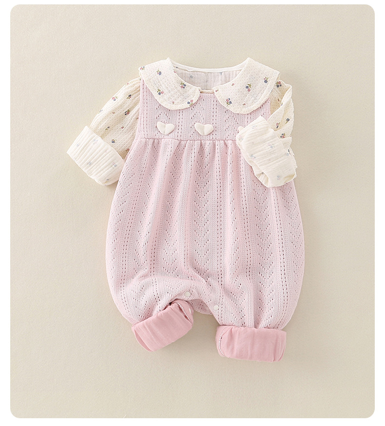 柔らかくて肌触りの良い素材で作られた、秋冬にぴったりの 女の子用ロンパースセット 。