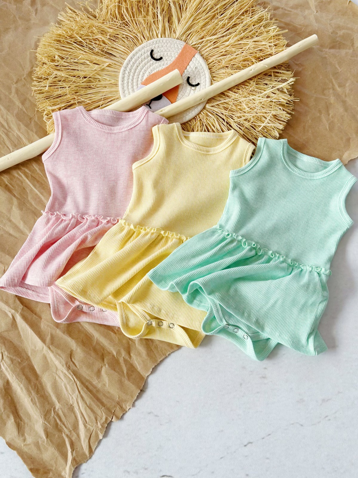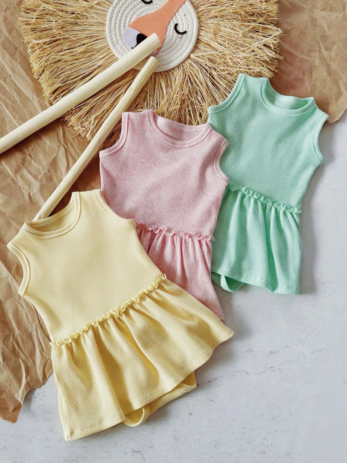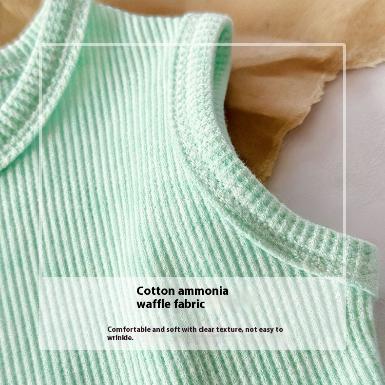 ベビー ワッフル ノースリーブ ボディスーツ 夏用 前開きボタン さらっと快適・やわらかコットン | Baby Waffle Sleeveless Bodysuit Summer Single-Breasted Soft Breathable Cotton