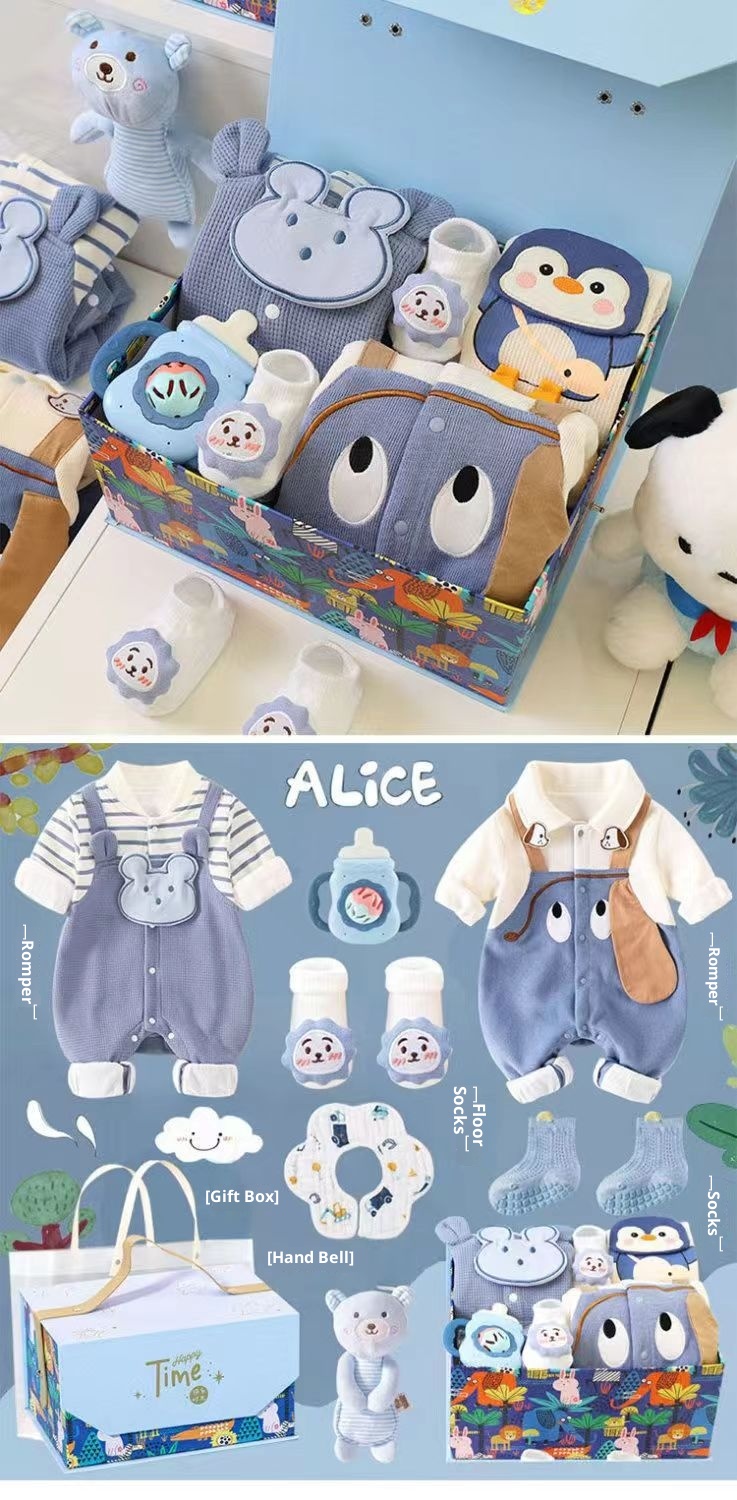 ・パッケージ内容: ベビー服、スタイ、帽子、靴下、ミトン、ギフトボック ス