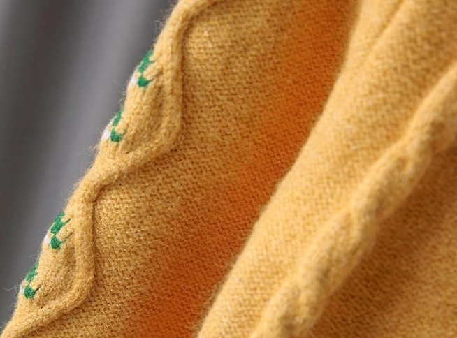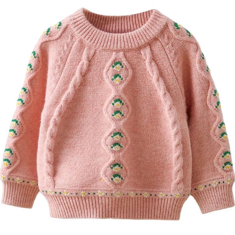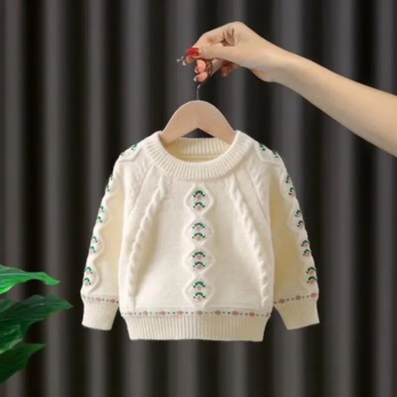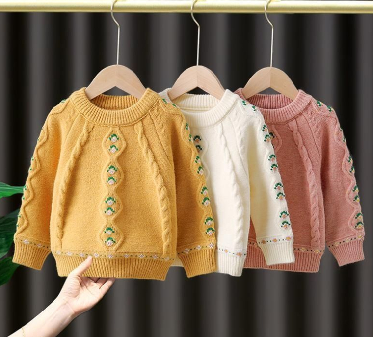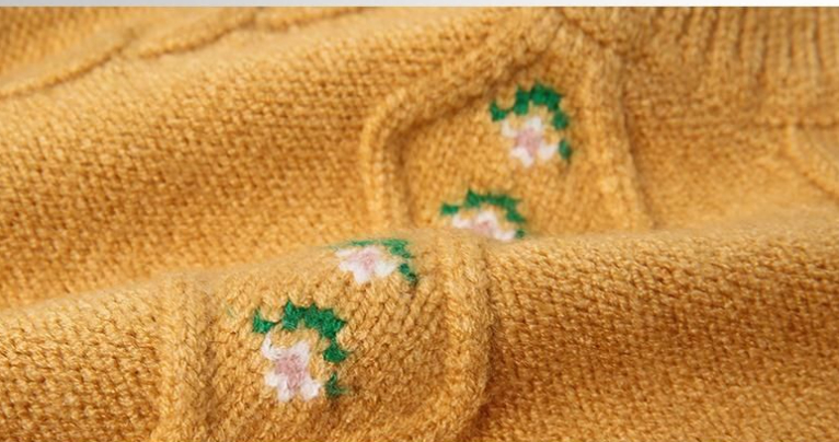 ふんわり軽やかで暖かい—— 花柄ダイヤ編みのガールズニットセーター です。