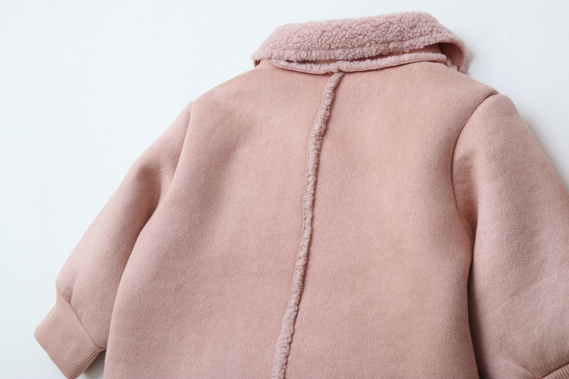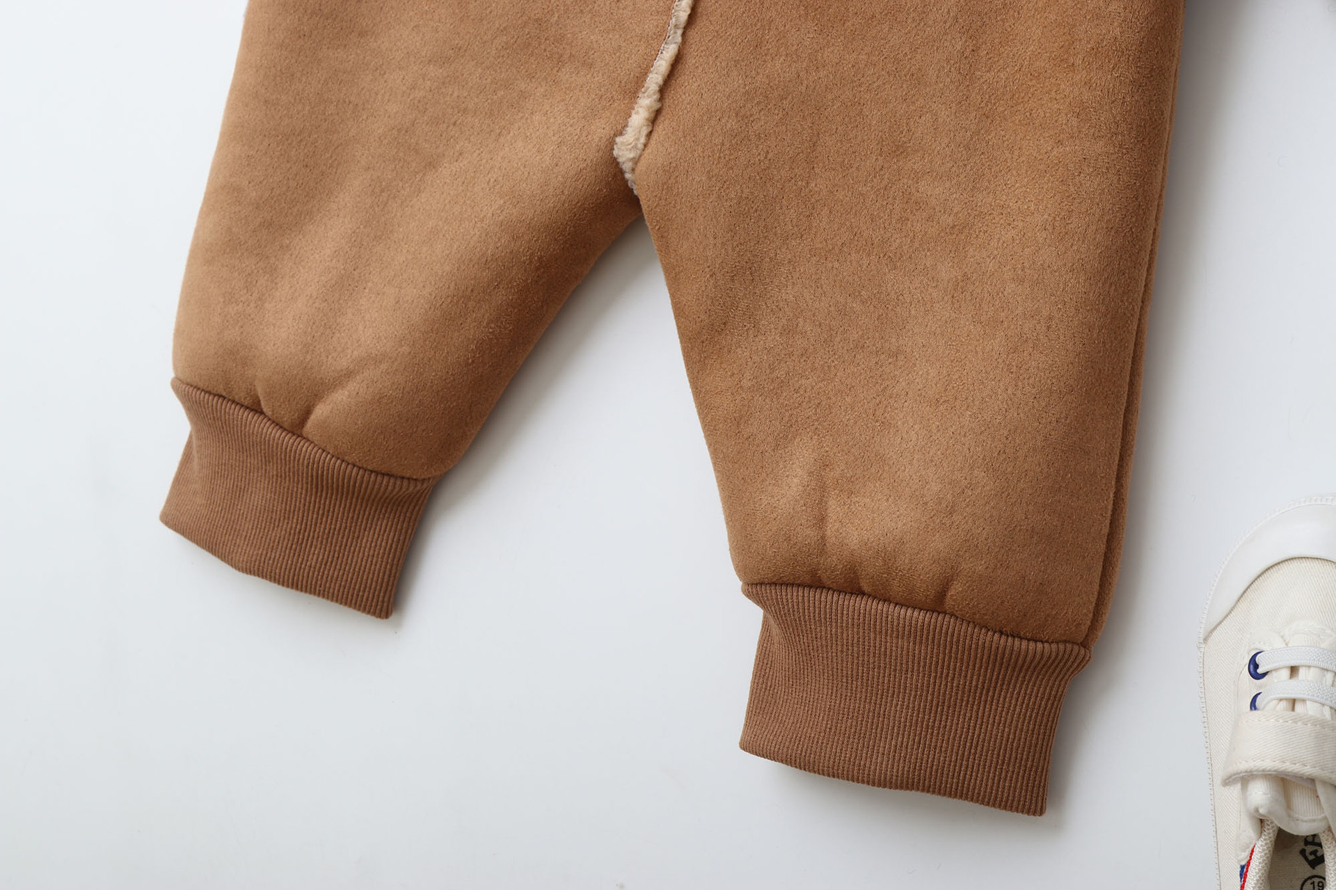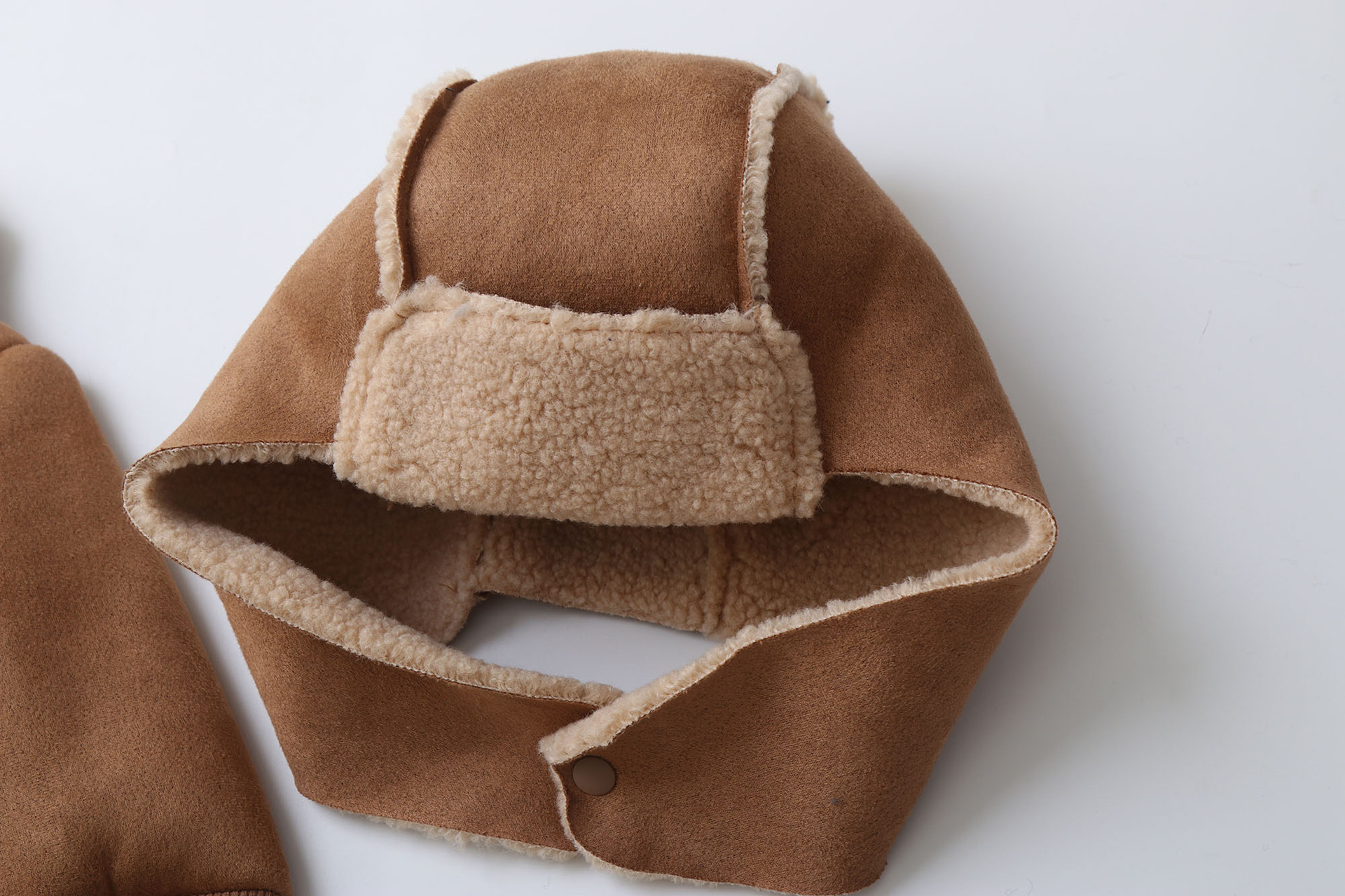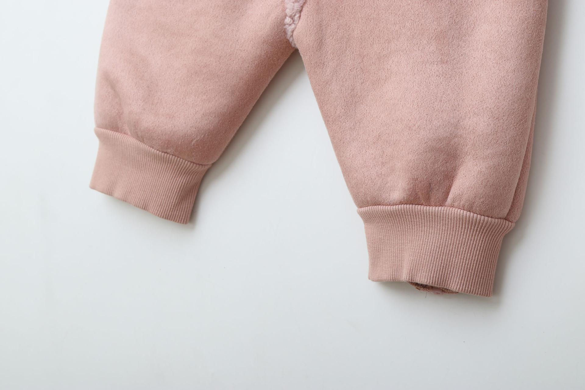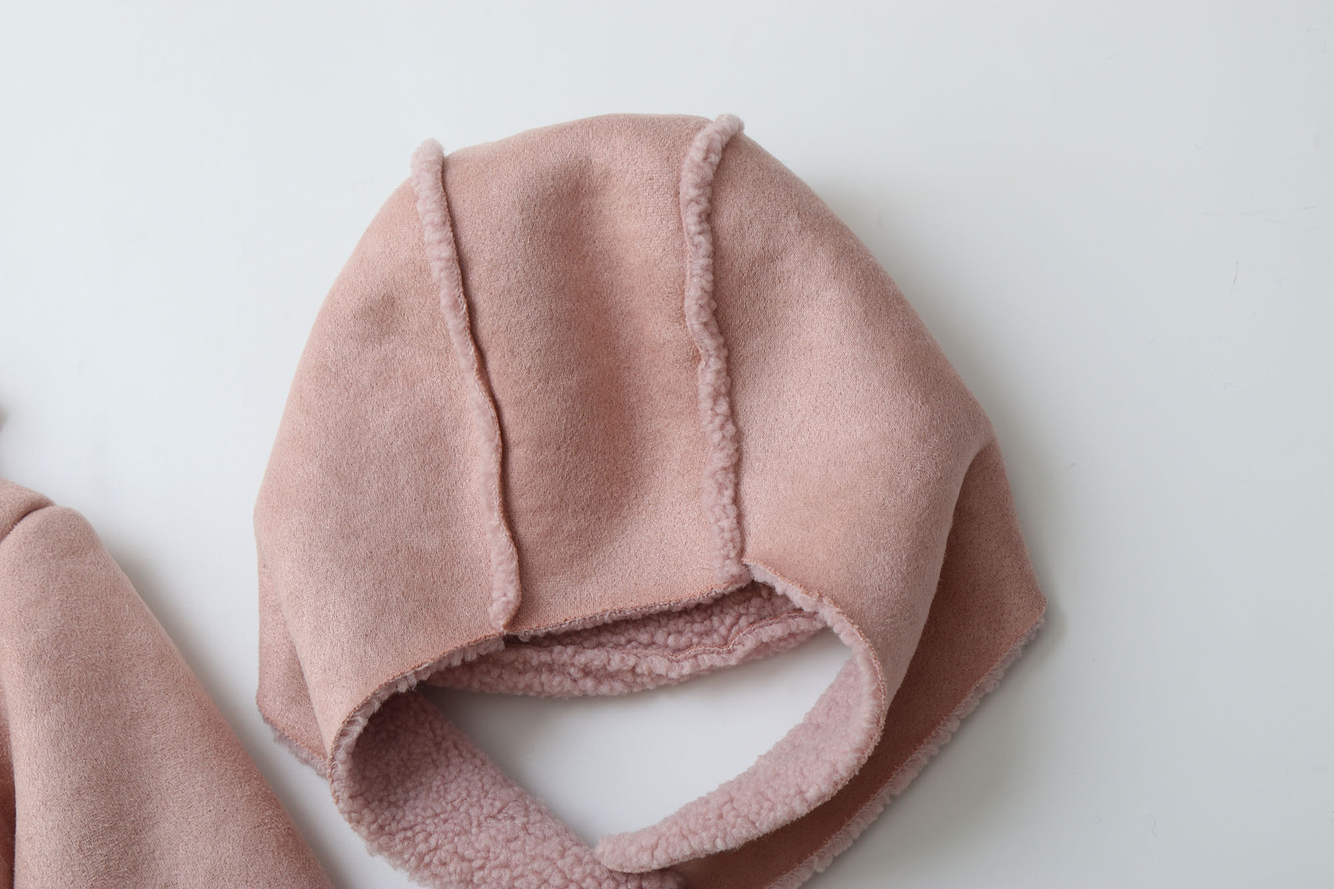 寒い季節でも赤ちゃんをやさしく包み込む— 厚手ファー素材のフード付きベビーロンパース 。