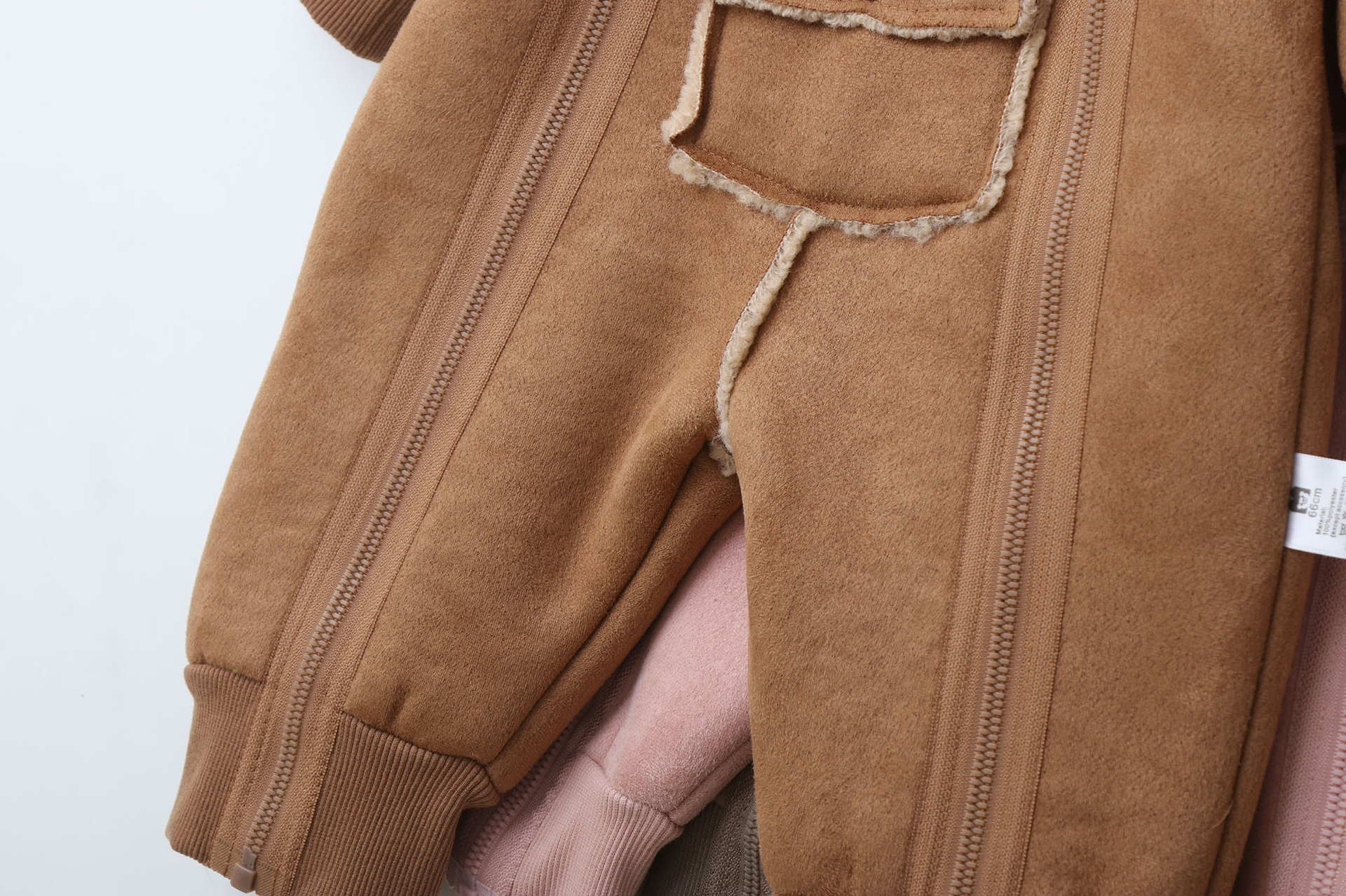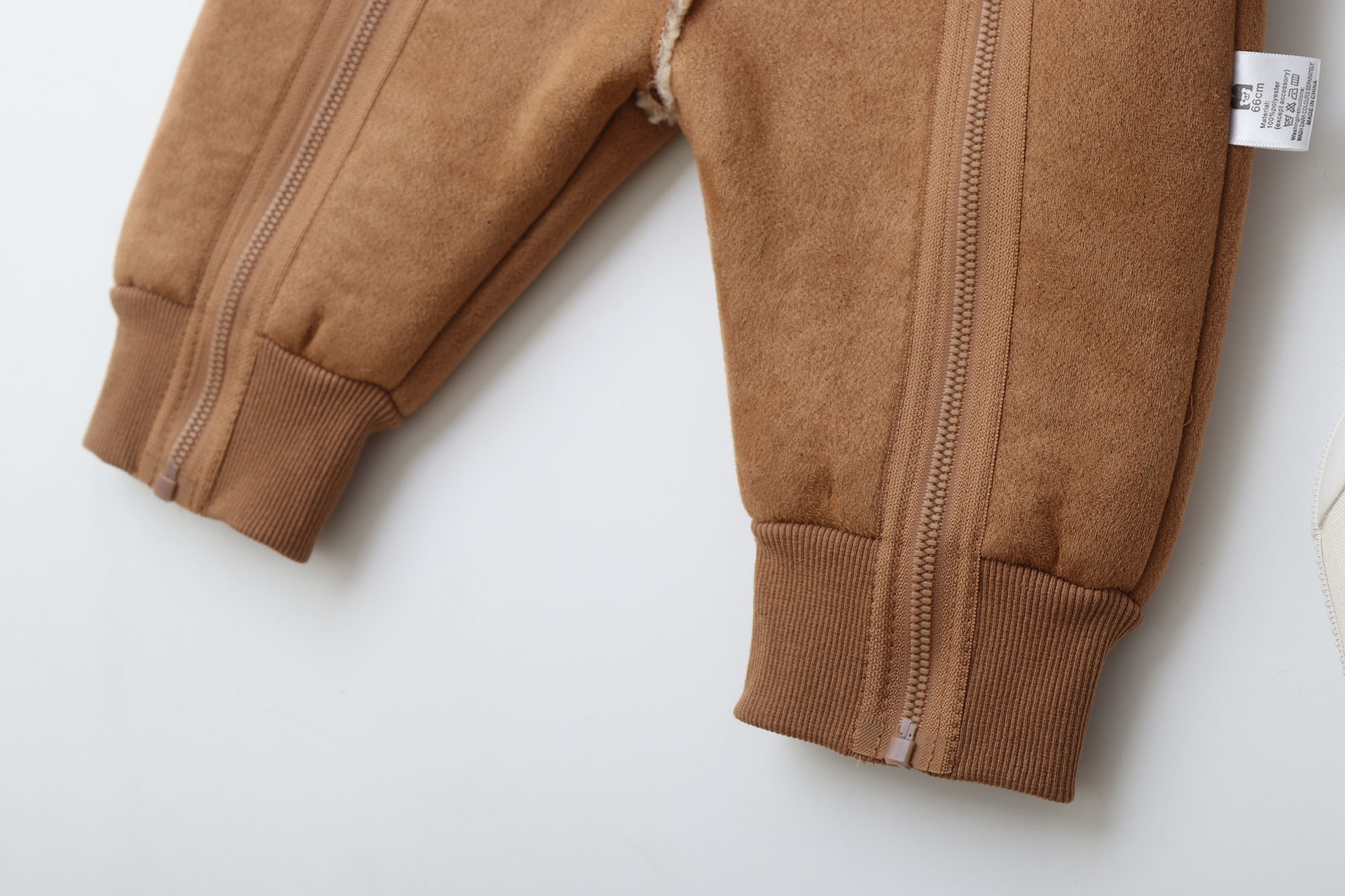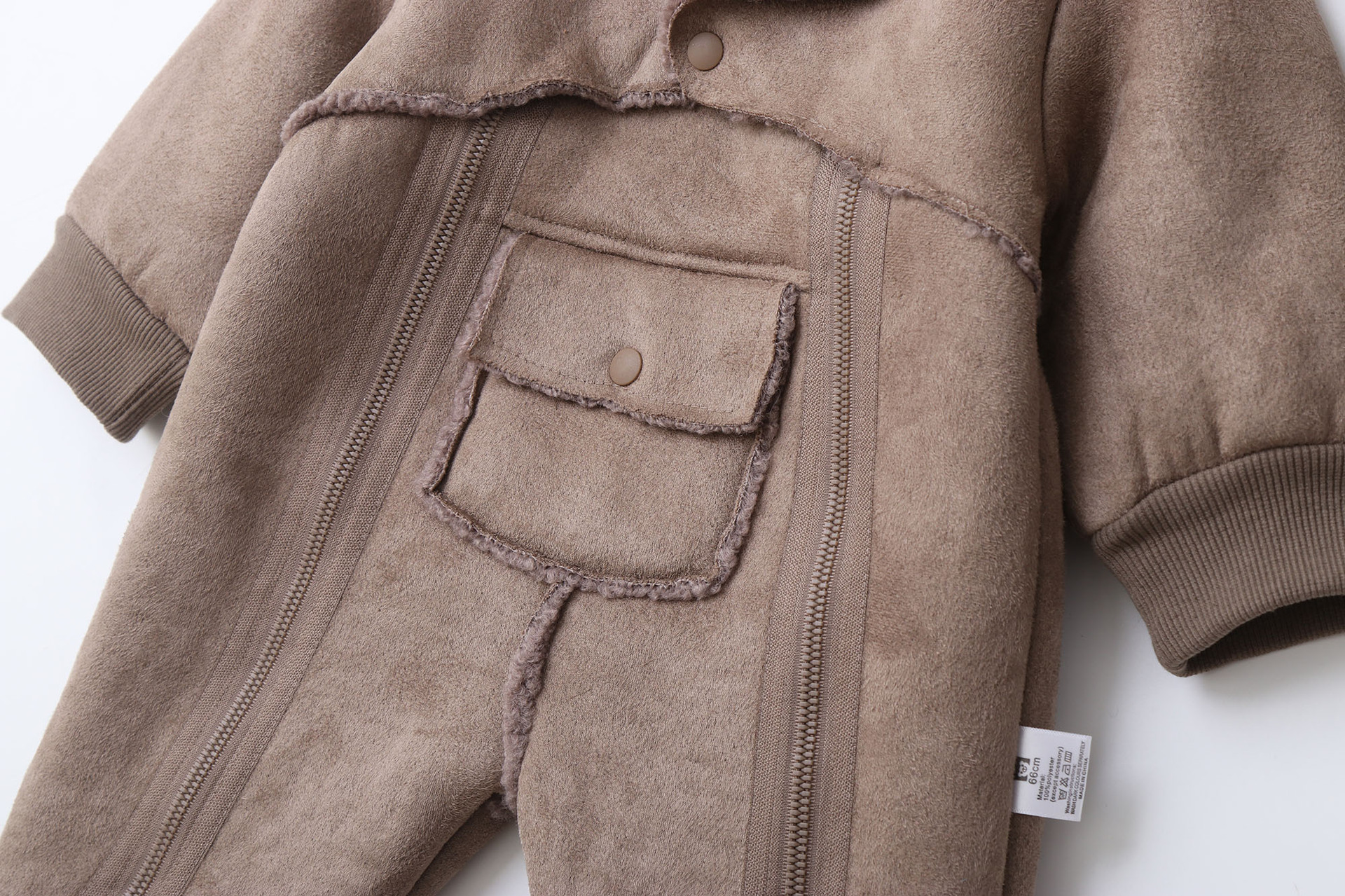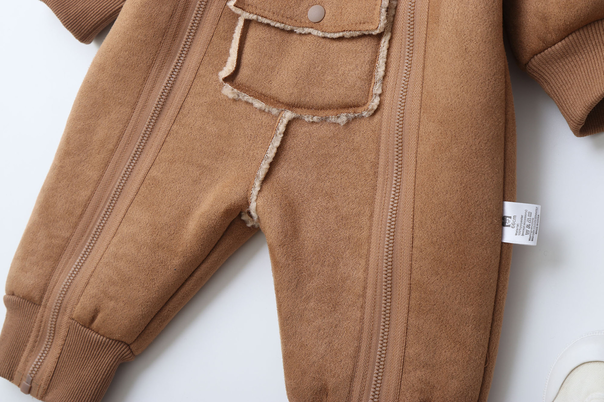 ベビー厚手ロンパース フード付きジャンプスーツ|冬用ファージップアップ・長袖・柔らかポリエステル素材 | Fur One-piece Hooded Jumpsuit for Babies