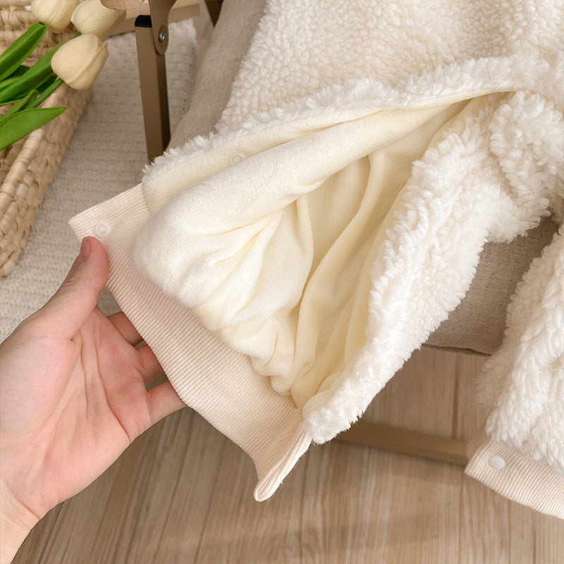 ふんわり厚手のコットン生地で仕立てた冬用ベビーロンパースです。空気を含む生地が体温を逃しにくく、外出時も室内でもあたたかさをキープ。縫い目のごろつきを抑えるフラットシーム(無骨縫製)で、デリケートな肌にもやさしい着心地です。プルオーバータイプでさっと着替えやすく、動きやすいロングスリーブのシルエットははいはいやお散歩にも最適。韓国風のシンプルデザイン×ブルーのワントーンで、男の子の冬コーデがすっきり決まります。