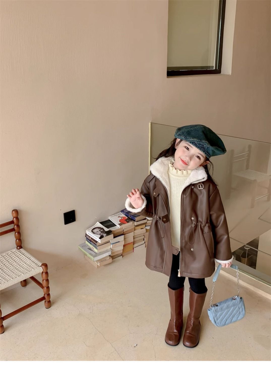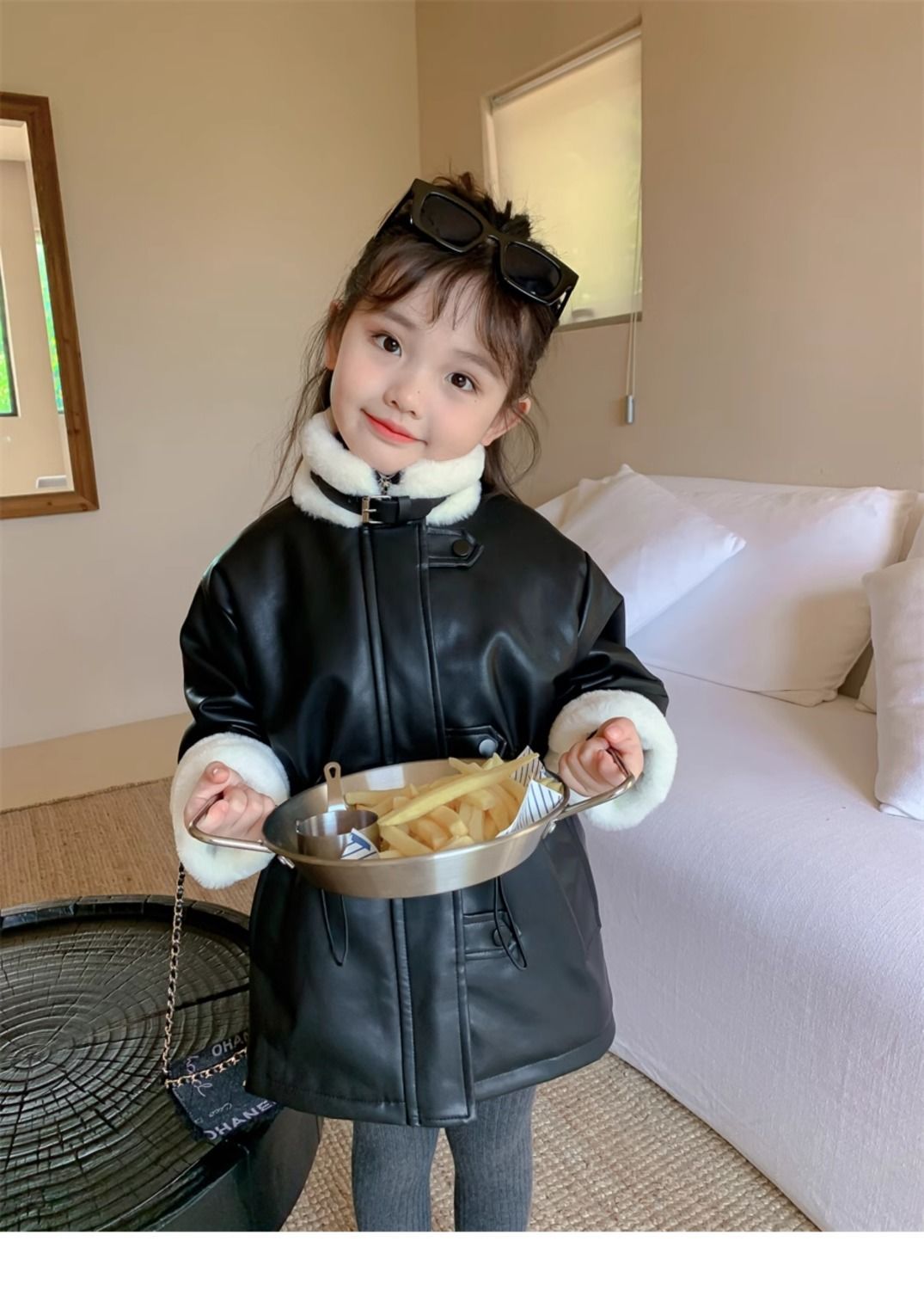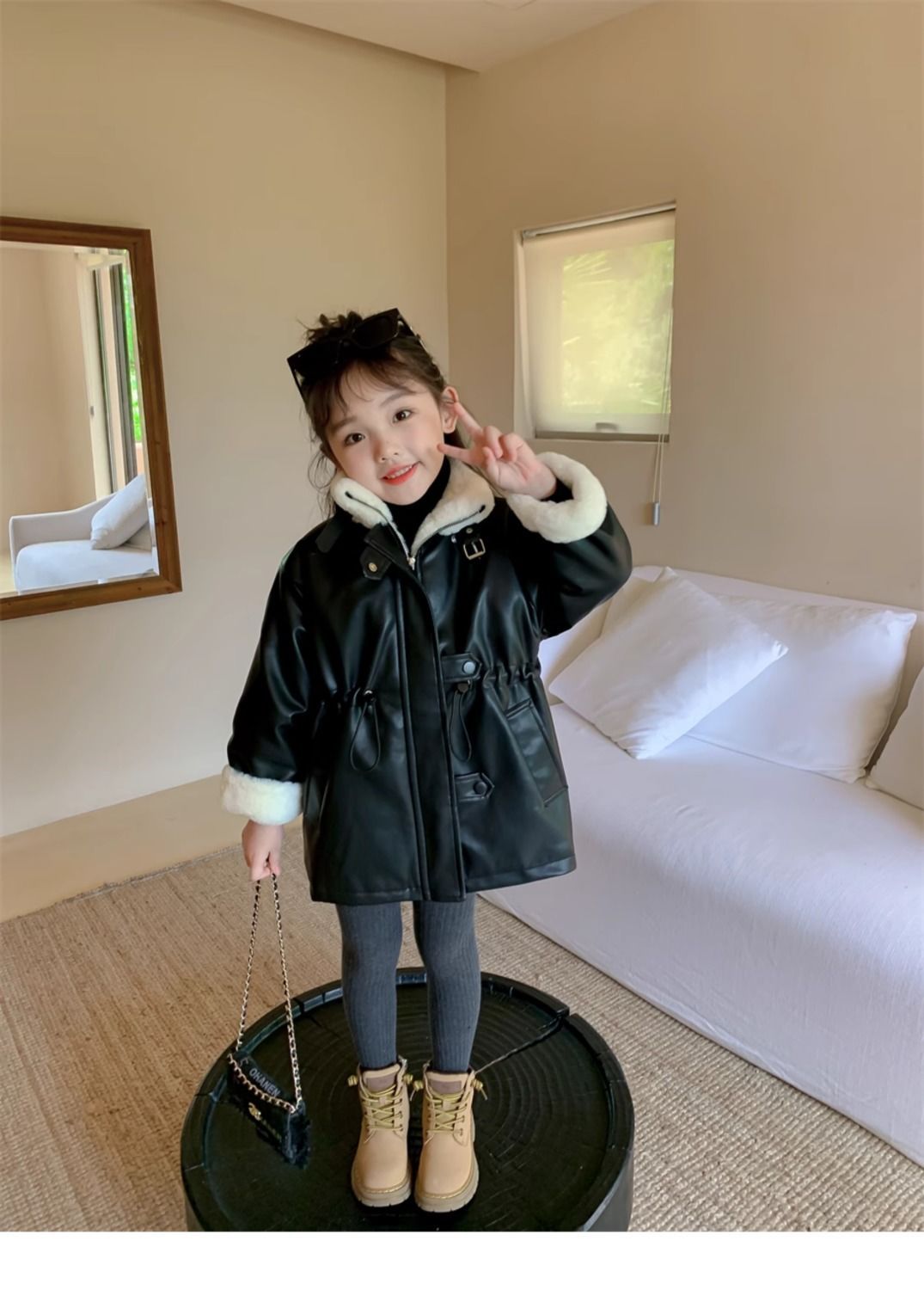 女の子用フェイクレザーフリースコート|裏起毛・厚手デザイン・通園通学に最適・秋冬カジュアル | Girls' Winter Fleece-lined Leather Coat | Thick Design, Soft Fleece Lining, Casual Style, Autumn & Winter
