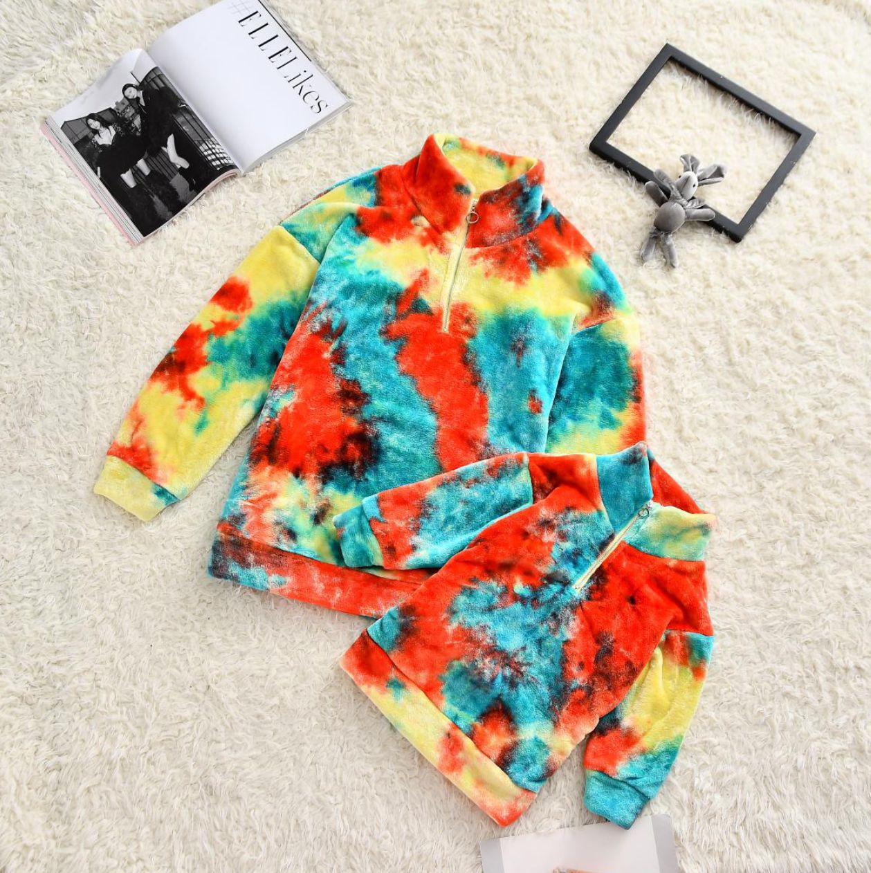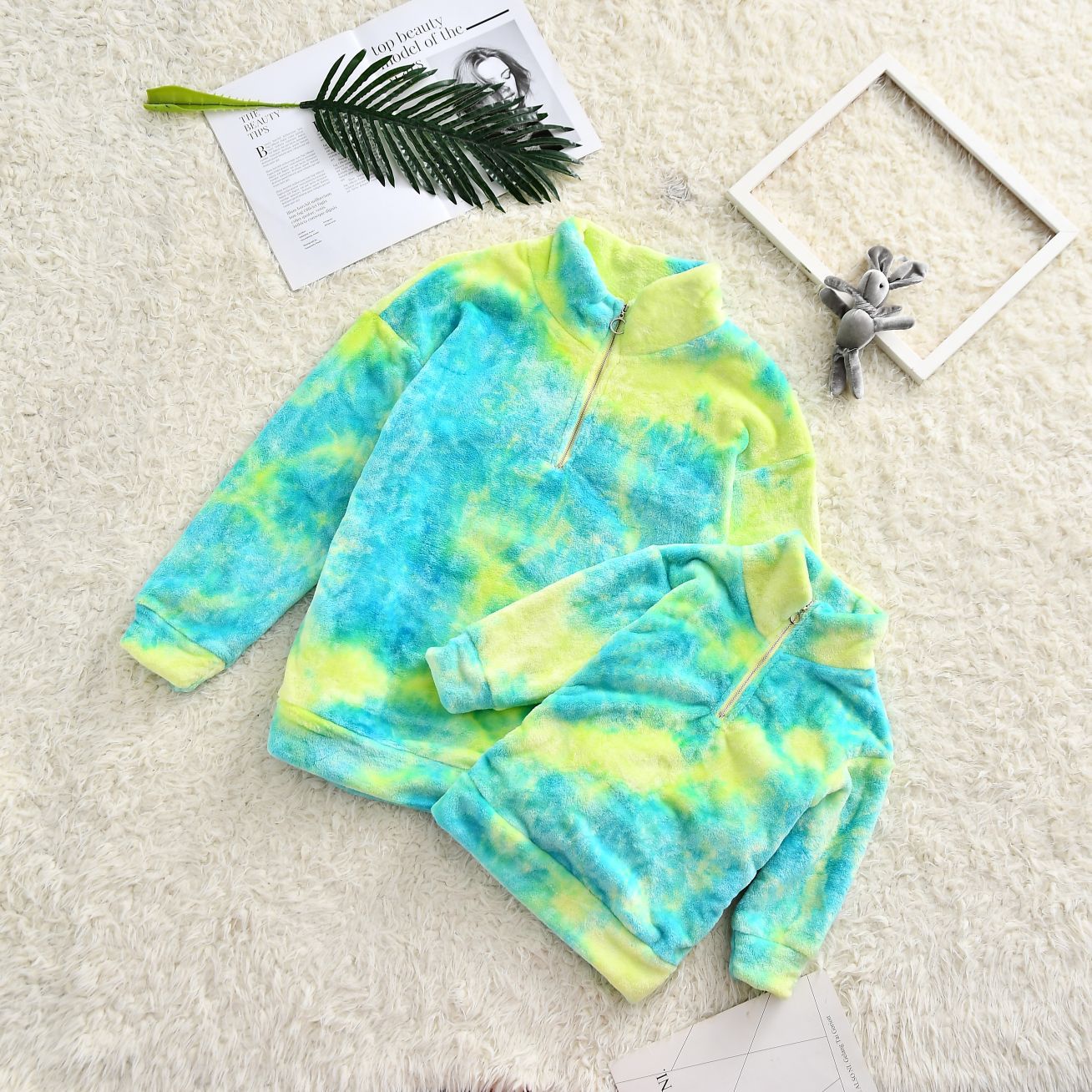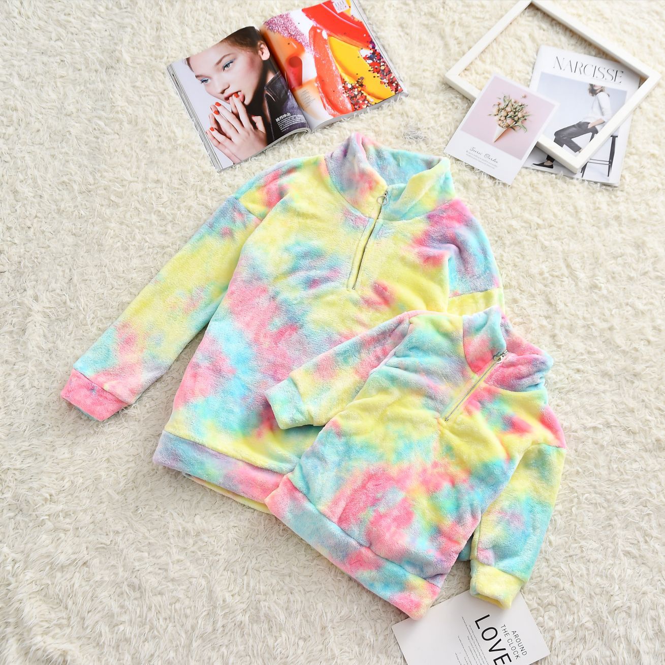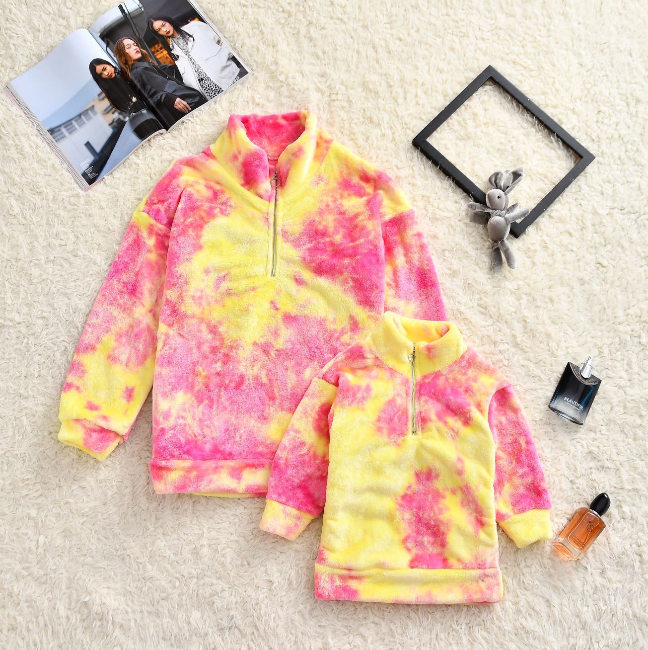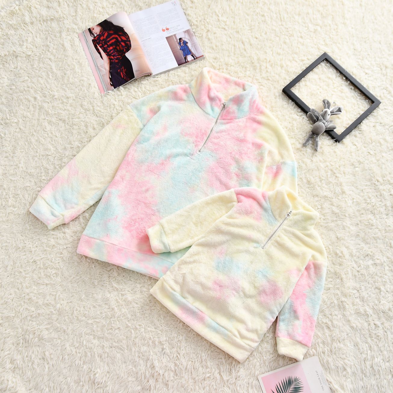 親子お揃いタイダイプルオーバー ダブルフェイスミンクフリース 厚手スウェットセット | Tie-Dye Parent-Child Matching Pullover Double-Sided Mink Fleece Thick Sweatshirt