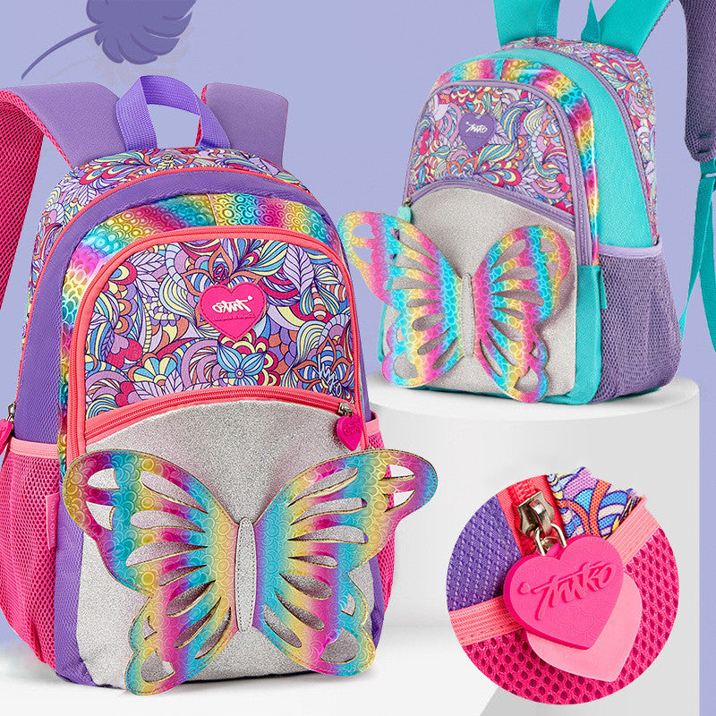 小学生女子向け|3Dレインボーバタフライ 撥水スクールバックパック 39×18.5×15.5cm(20–35L)