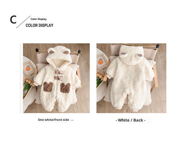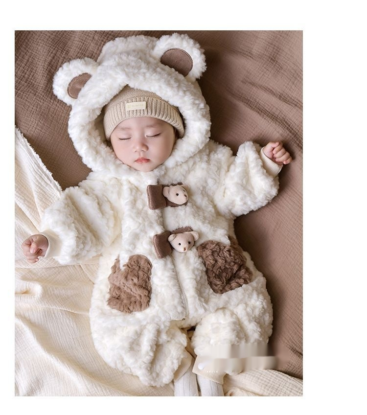 赤ちゃんの全身をふんわり包み込むあたたかさで、寒い季節のおでかけも安心。 ベビー防寒カバーオールとして、やわらかな肌ざわりと愛らしいシルエットを両立させた一枚です。