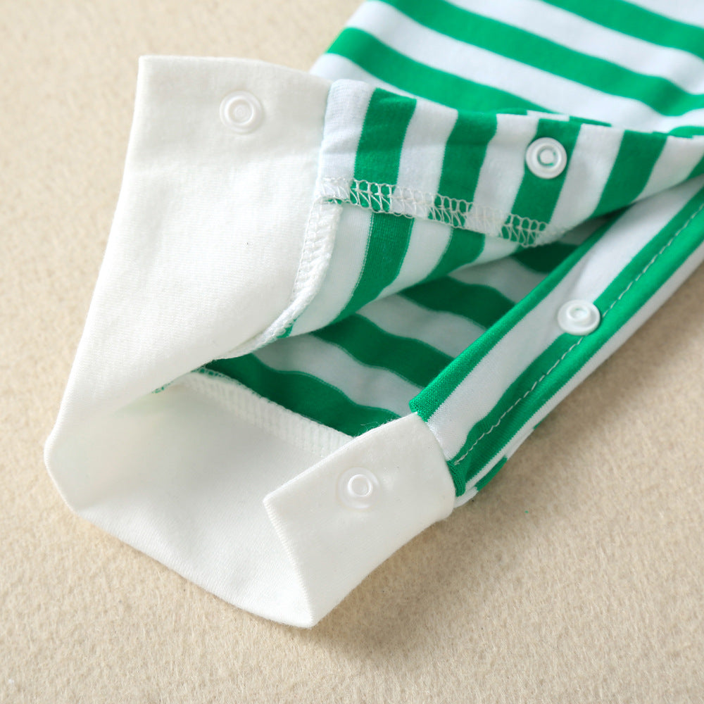 おむつ替えもスムーズで快適 子ども長袖カバーオール グリーンボーダー きりんアップリケ コットン混 60〜90cm