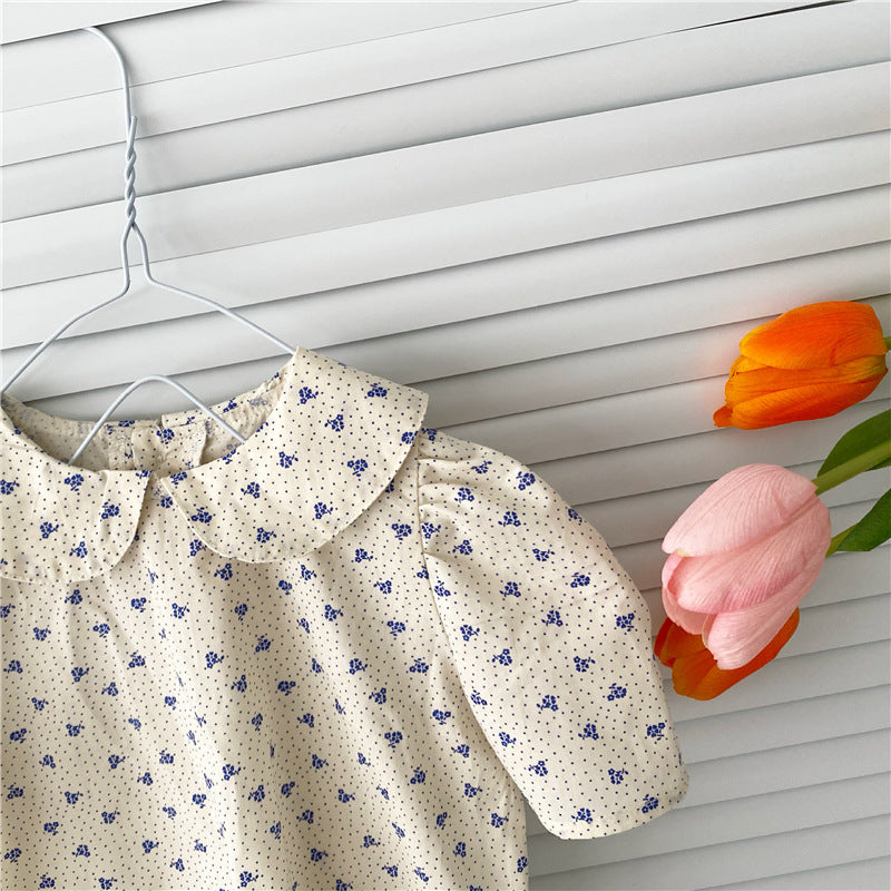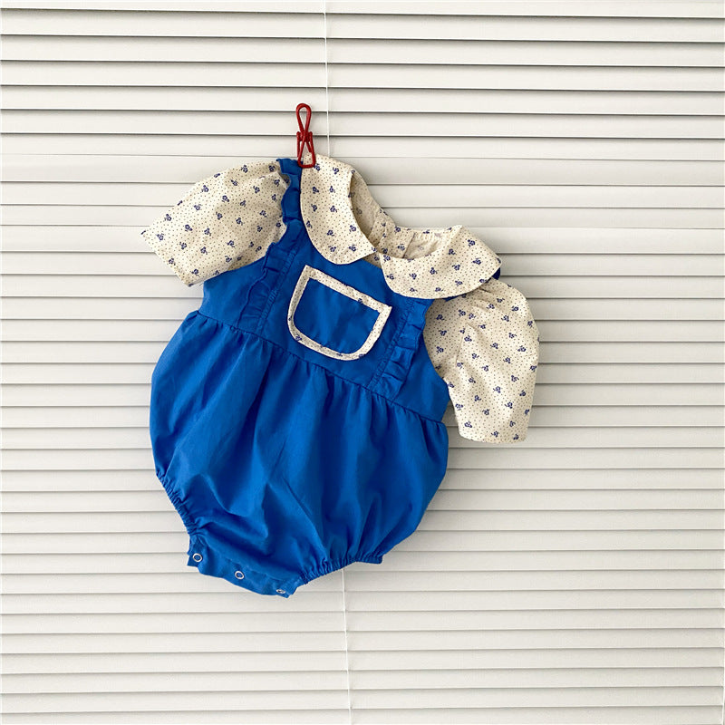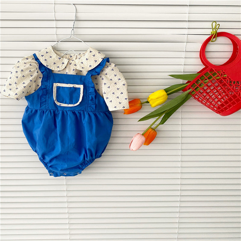 花柄ブラウス×ブルーサロペットロンパース 女の子2点セット 66〜90cm