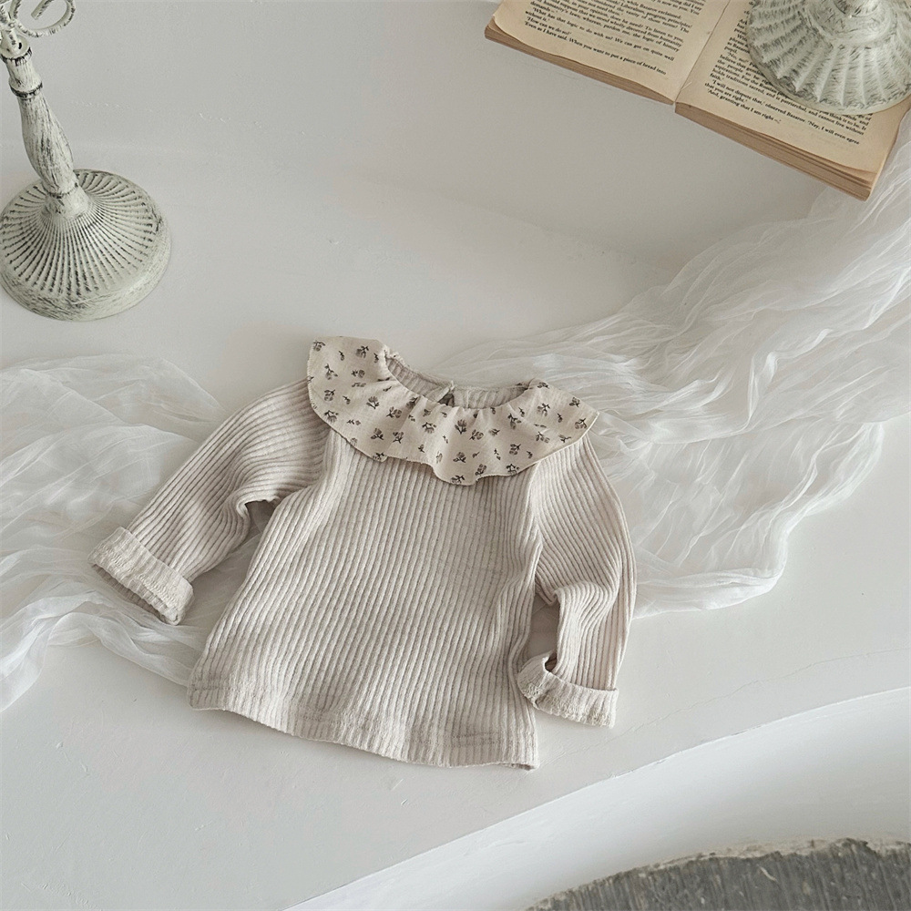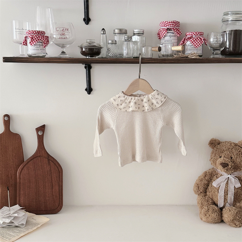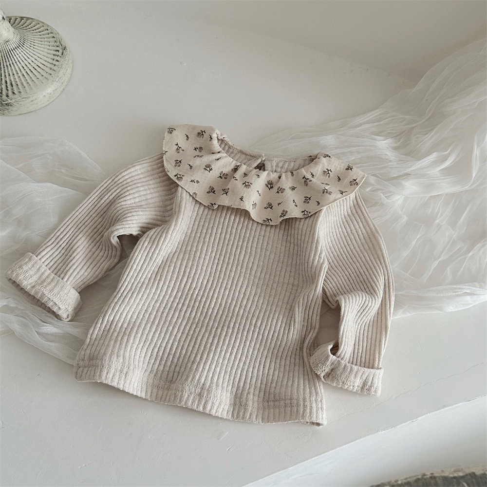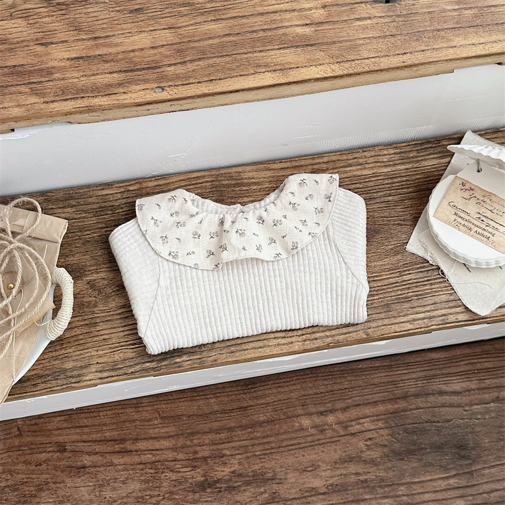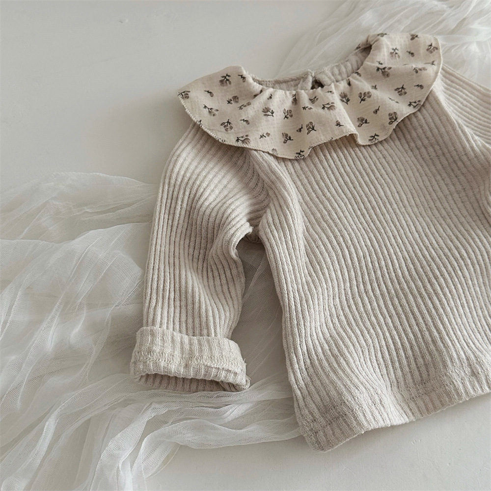 写真映えする花柄フリル襟が愛らしい ベビー女の子長袖トップス コットンニット 52–75cm