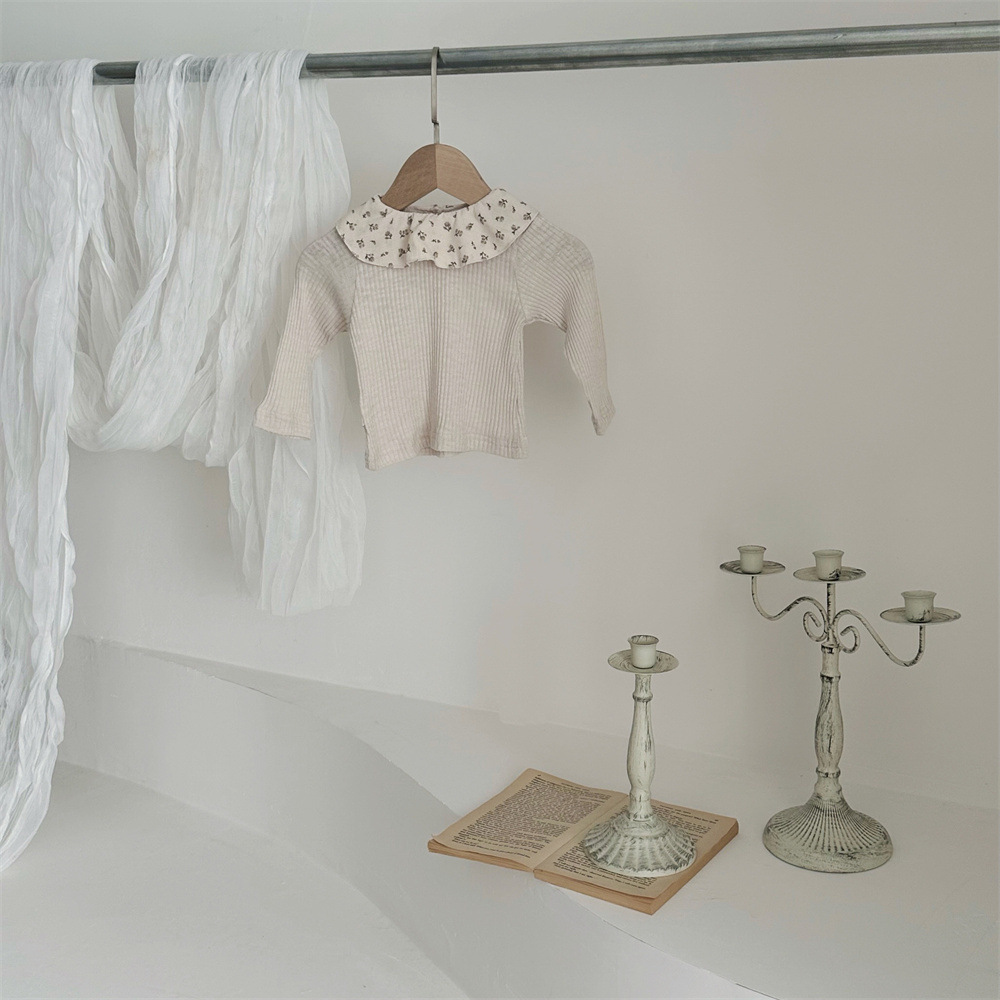 花柄フリル襟がポイントのベビー女の子長袖トップス 52–75cm