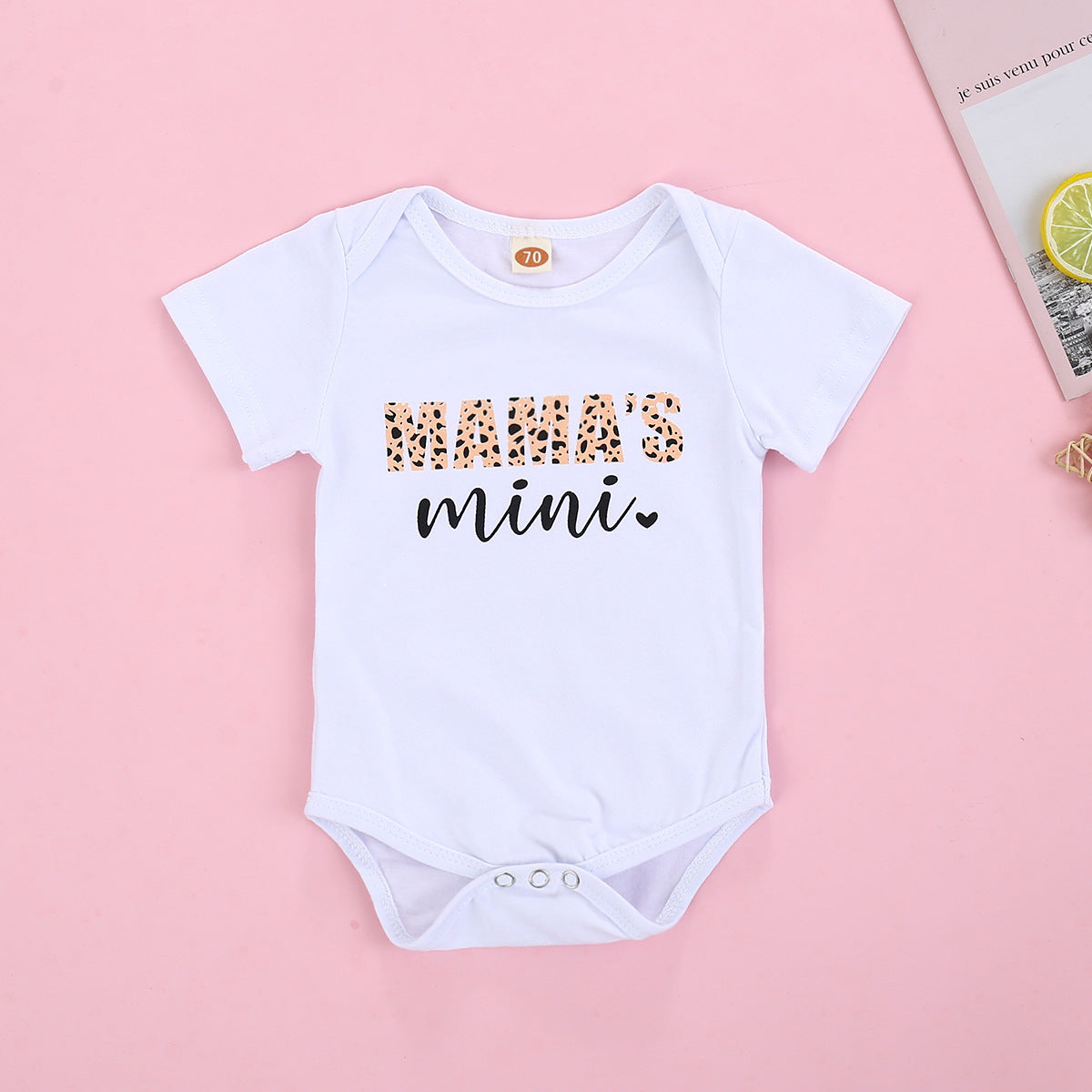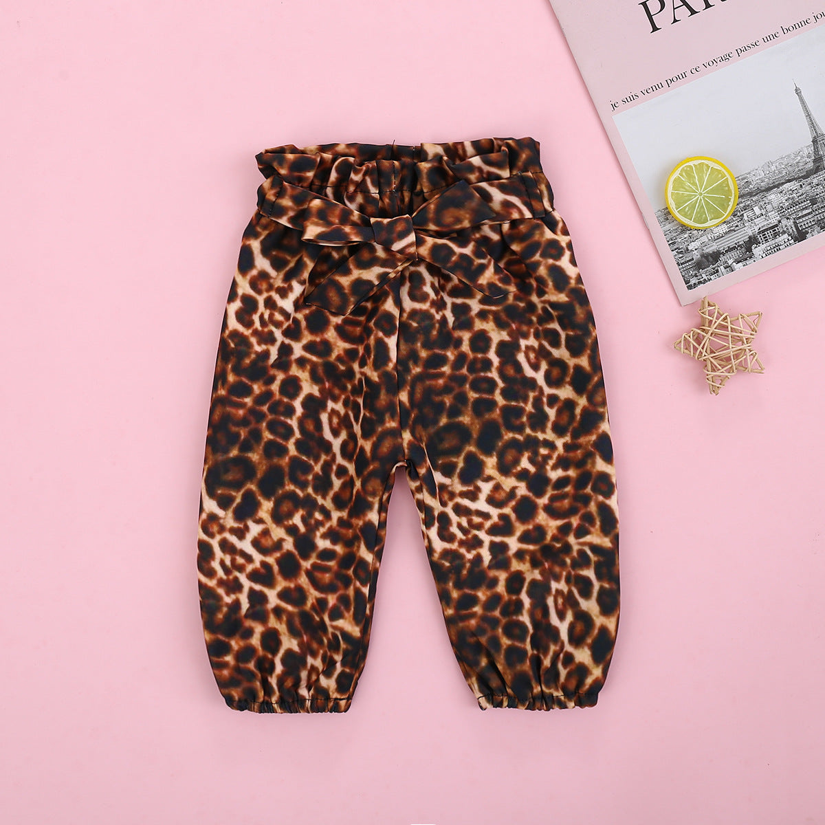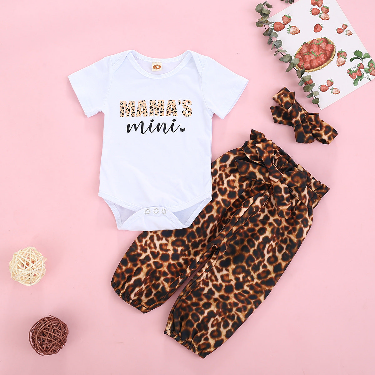 きゅんと映えるリンクコーデが完成する 女の子半袖ロンパース&レオパード柄ロングパンツ&ヘアバンド3点セット レタープリント コットン 70~100cm