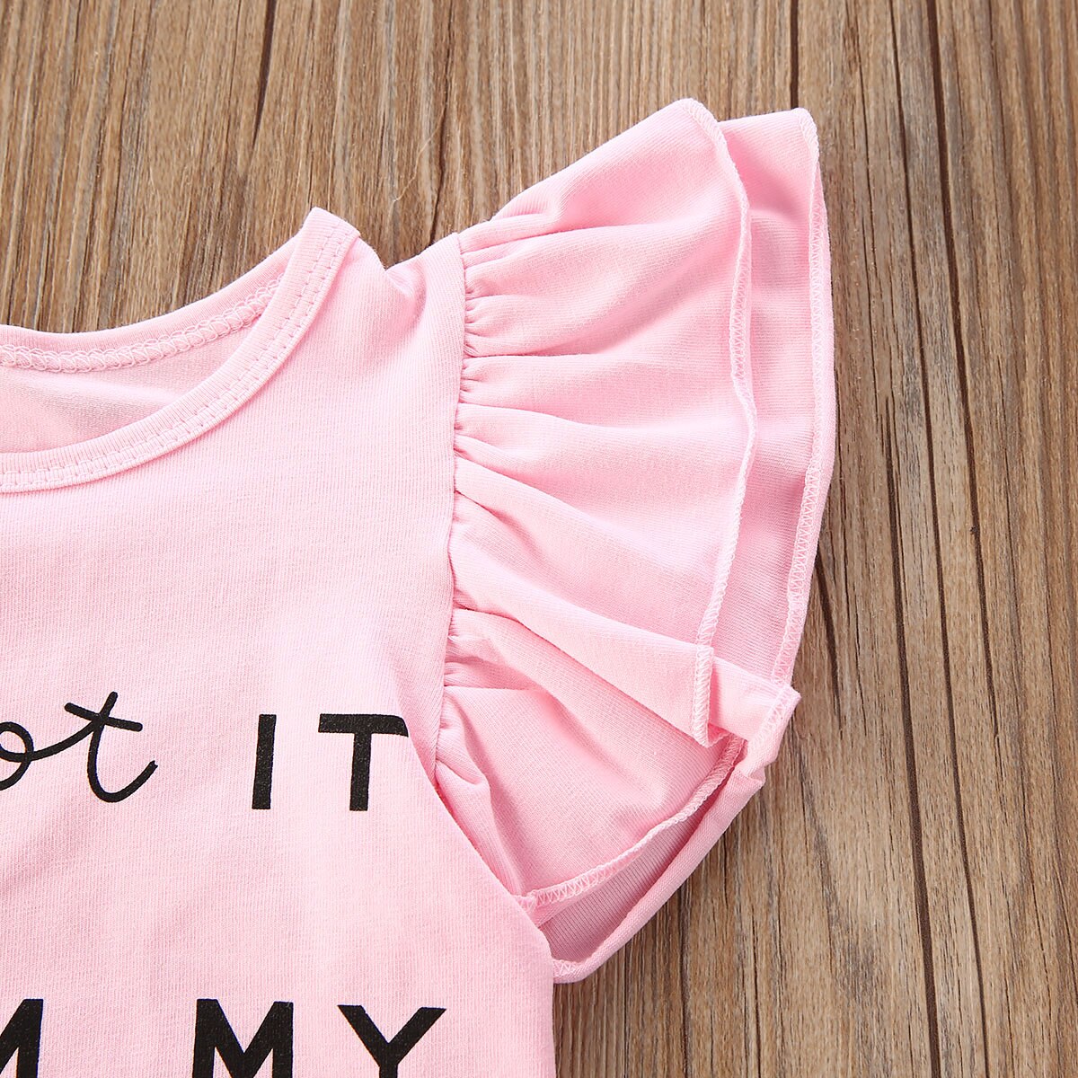 ふんわりピンクで可愛く映える 女の子ベビーロンパース&レオパード柄パンツ3点セット メッセージプリント フリル袖 70~100cm