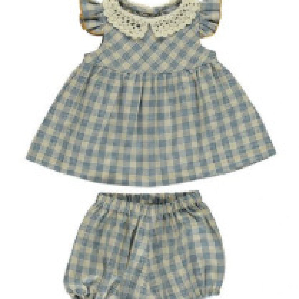 秋冬の重ね着コーデが可愛くまとまる 女の子ワンピース&ブルマセット グレー×ブルーストライプ コットン素材 73~110cm