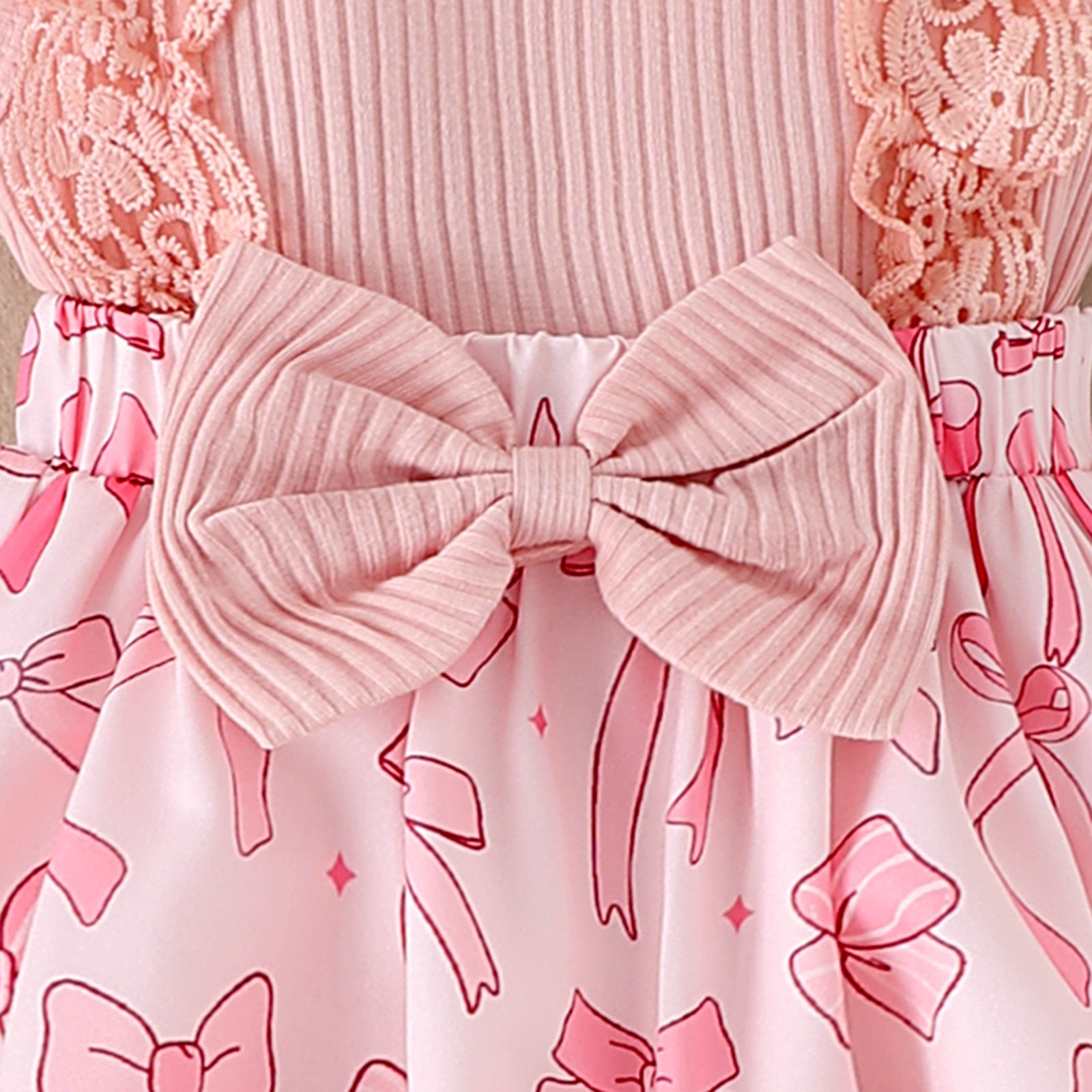 - ◈ リボン柄プリント: 甘すぎず、写真映えする可憐なムード