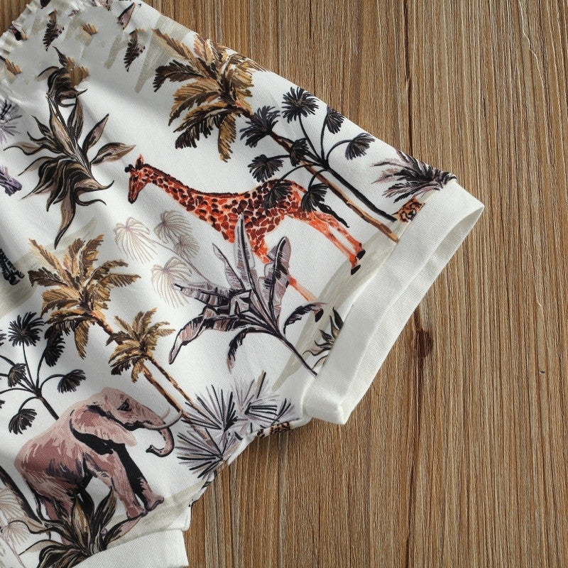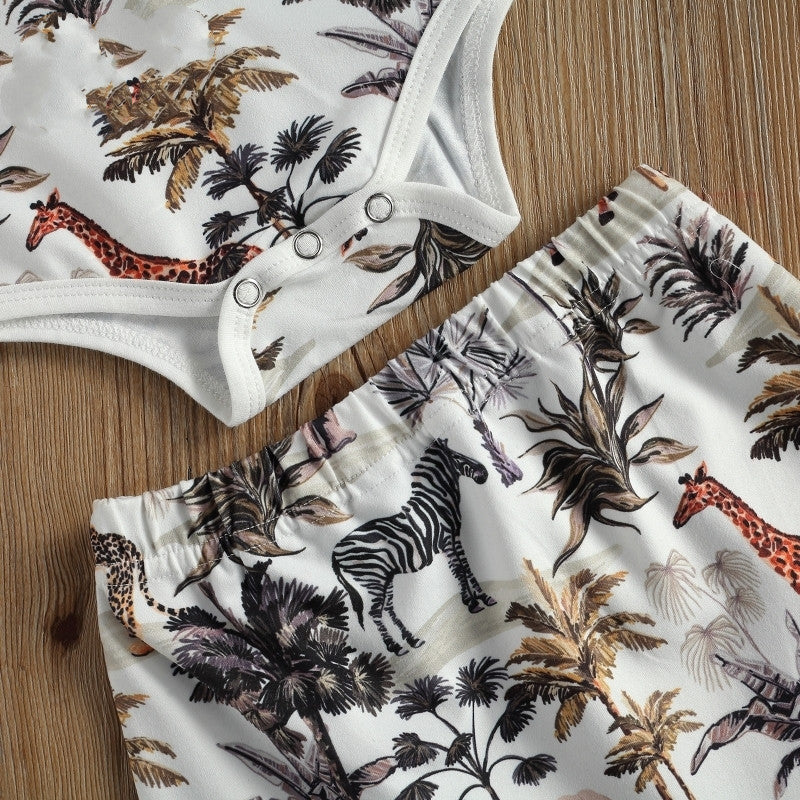 毎日がもっと楽しくなる サファリ柄ロンパース&ショートパンツセット 12ヶ月〜3歳