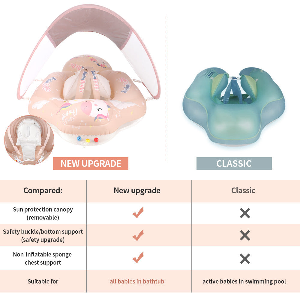 ベビー用アンダーアーム浮き輪 日よけサンシェード付き セーフティバックル&股ベルト 取り外しキャノピー 新生児〜幼児 スイムリング(S・L・XL)