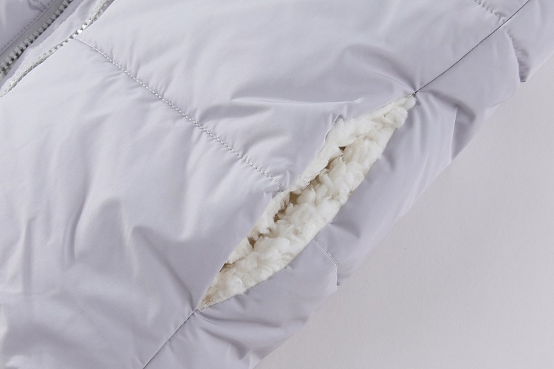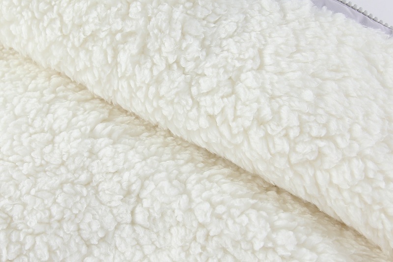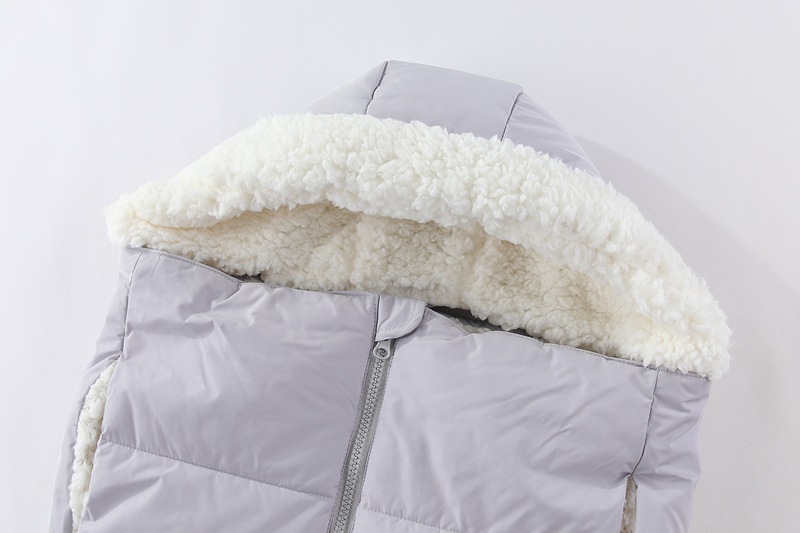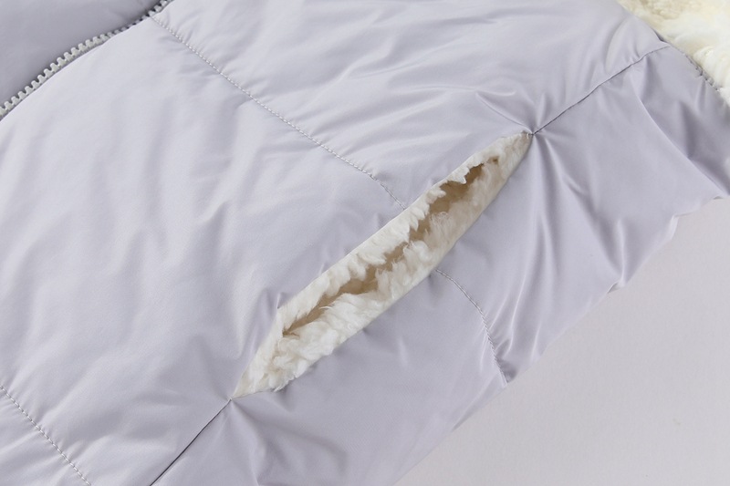 ■ 厚手フリース裏地と合成繊維中綿の二重保温構造で、冬の冷たい外気から赤ちゃんの体をしっかり守る