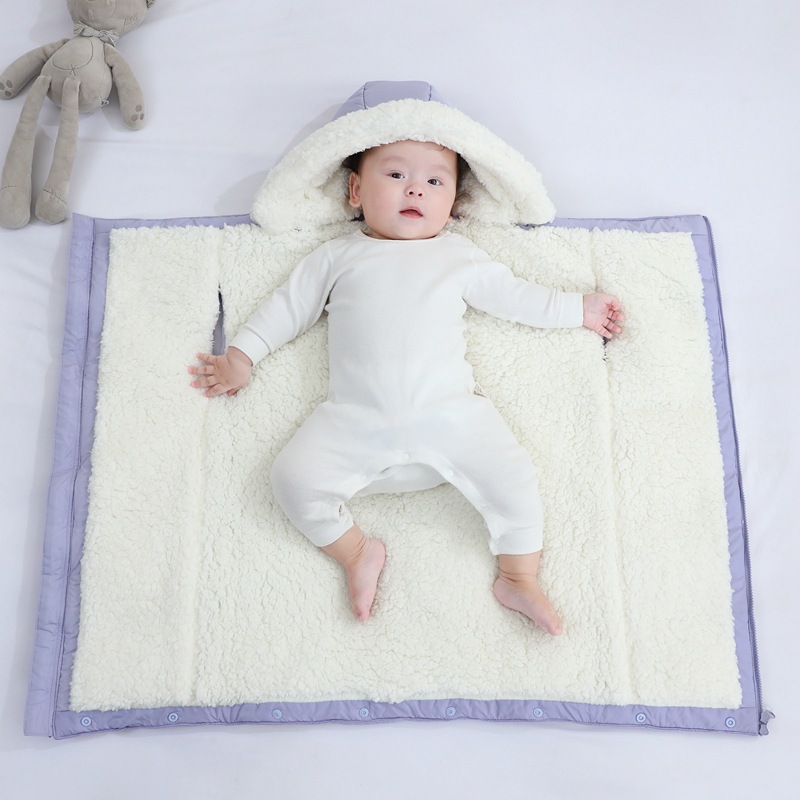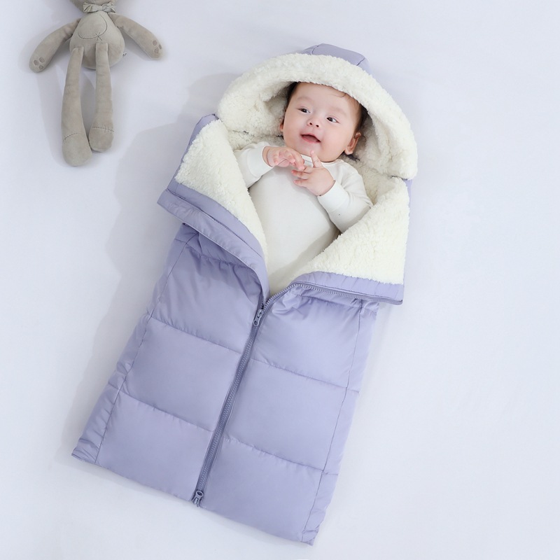 ベビー厚手フリースフード付きスリーピングバッグ 0〜1歳 冬用着るおくるみ 70cm グレー・パープル・ベージュ・ピンク | Baby Thick Fleece Hooded Sleeping Bag 0–1Y Winter Wearable Swaddle 70cm