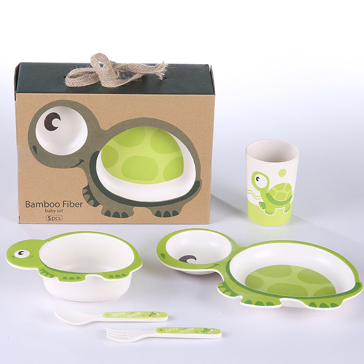 竹繊維配合 かめデザイン ベビー食器5点セット(仕切りプレート・ボウル・カップ・スプーン・フォーク)