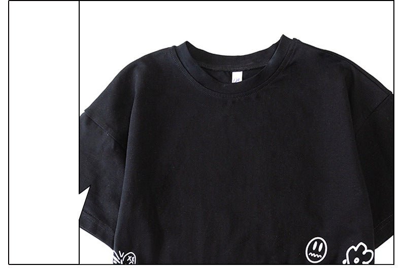 さらっと涼しく動ける 男の子半袖Tシャツ&ハーフパンツセット ストリート落書きプリント モダール 110~160cm