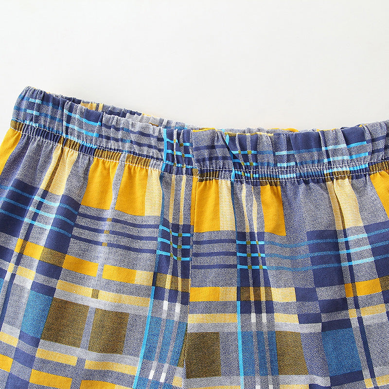 夏の外遊びに映える 車プリントTシャツ&チェックショートパンツセット 90~140cm
