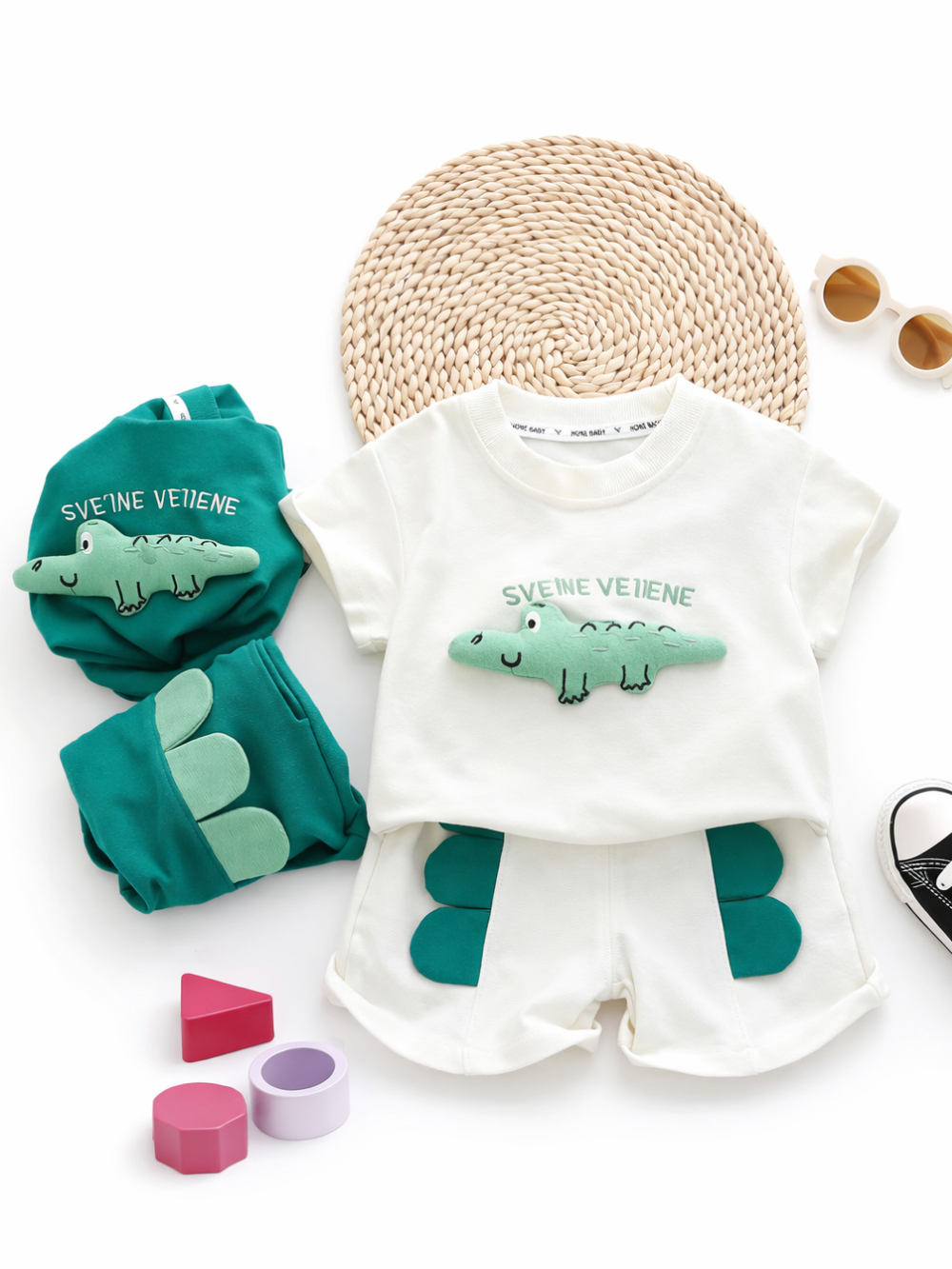 元気いっぱいおでかけできる男の子ワニ半袖セットアップ 80–120cm