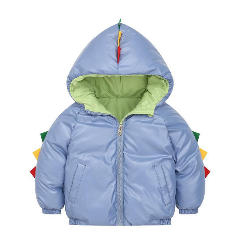 あったか恐竜モチーフで冬のおでかけが楽しくなる 男の子フード付き中綿ジャケット カートゥーン恐竜プリント 厚手 ポリエステル中綿 90~130cm