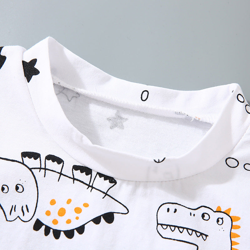 のびのび動ける 男の子半袖セットアップ 恐竜フルプリント やわらか加工生地 80〜120cm