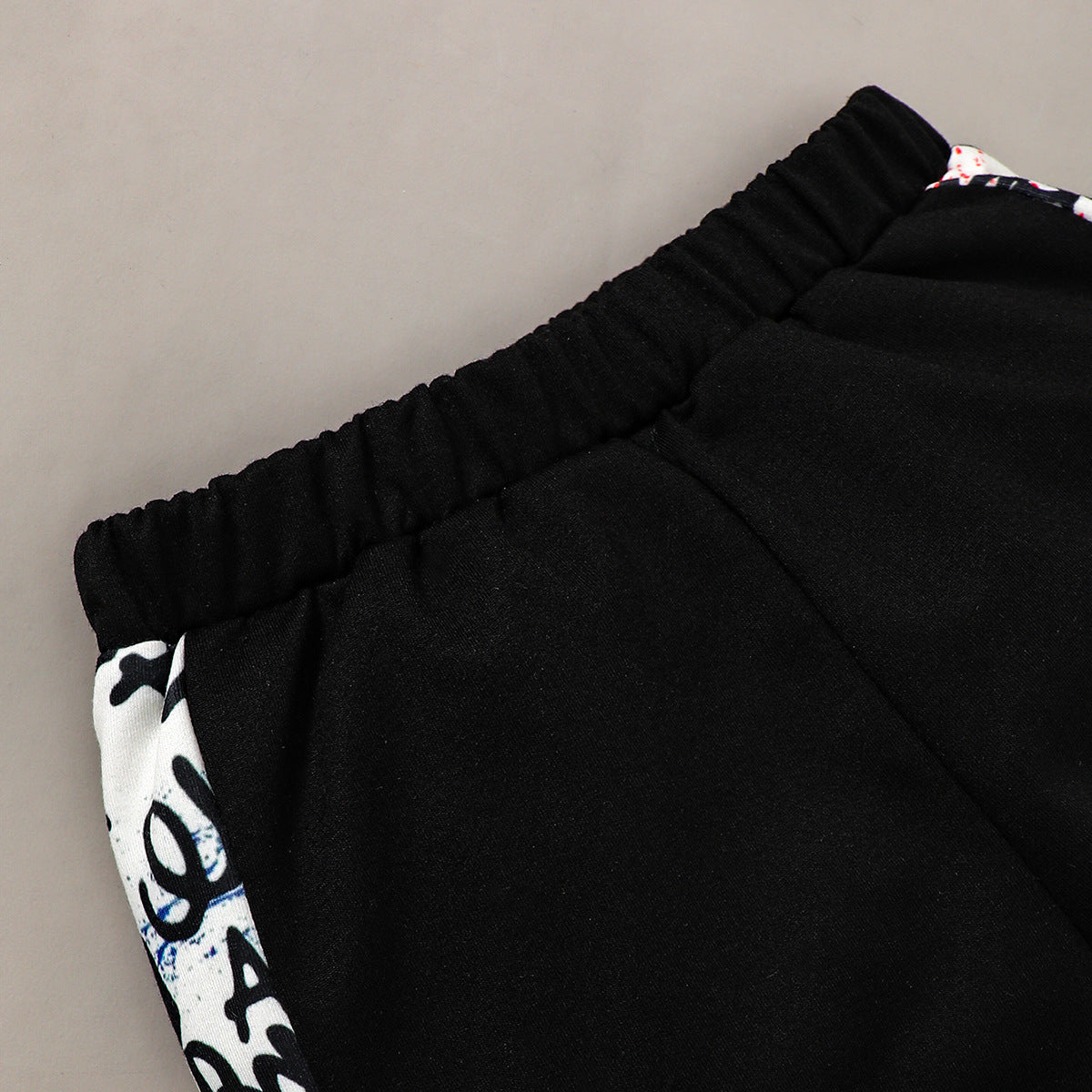一枚でコーデがキマる存在感で、いつものおでかけがぐっと楽しく。 グラフィティ風プリントのトップスと、合わせやすいブラックパンツの組み合わせで、子どもらしい動きやすさとおしゃれ感を両立します。