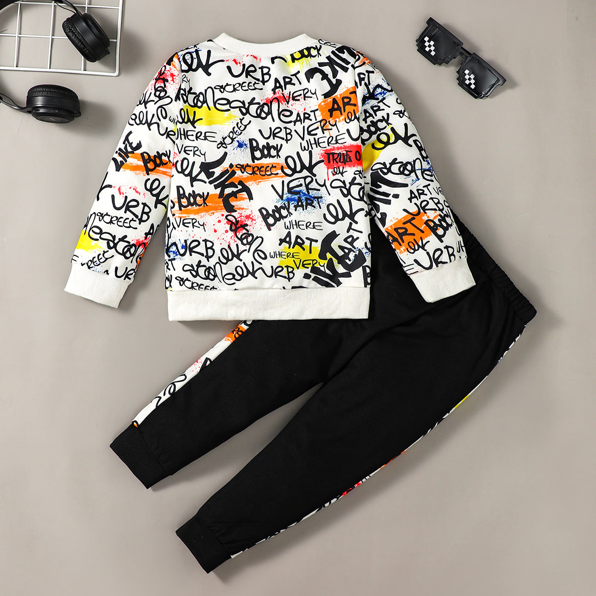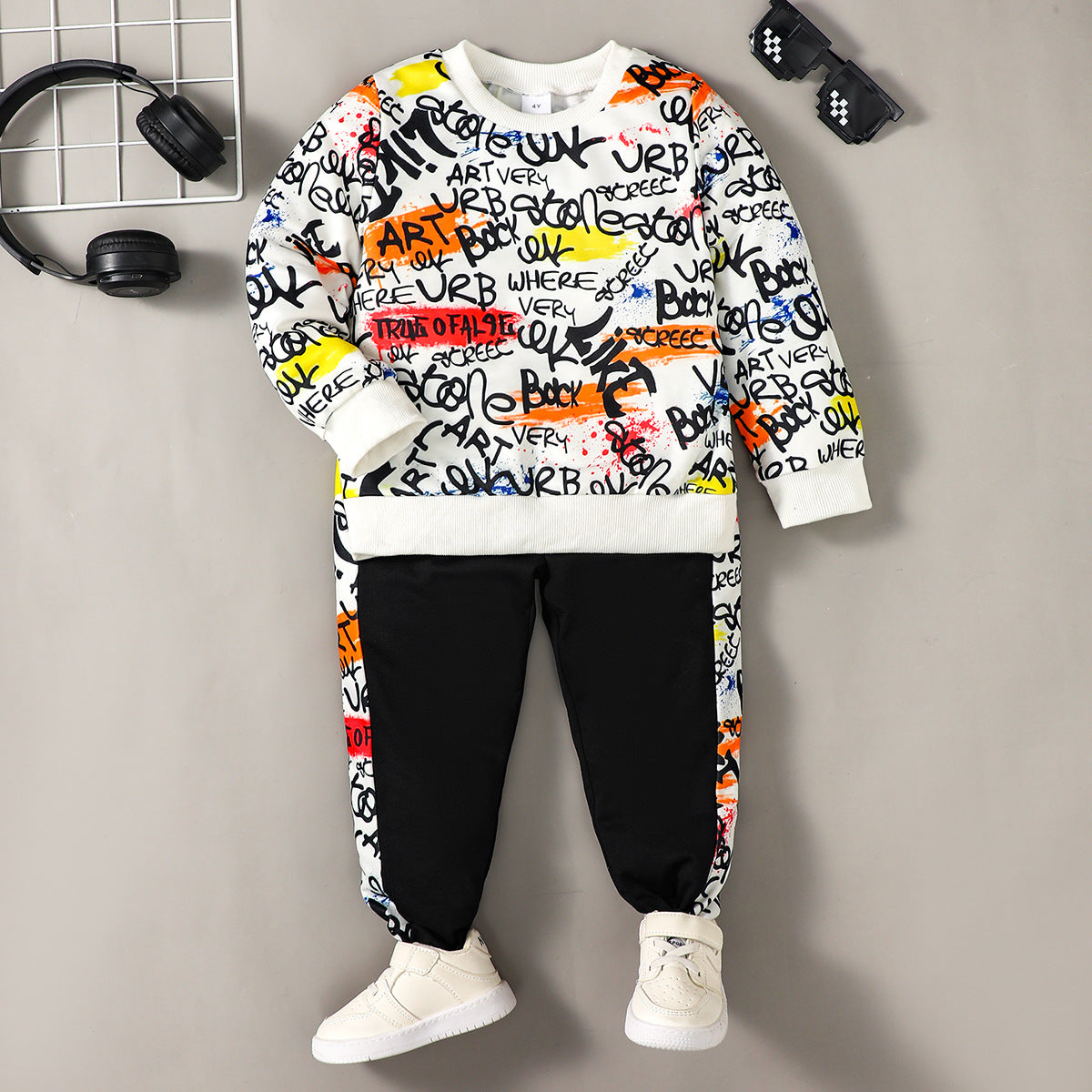グラフィティプリント長袖トレーナー&ロングパンツ 上下2点セット(4〜7歳)