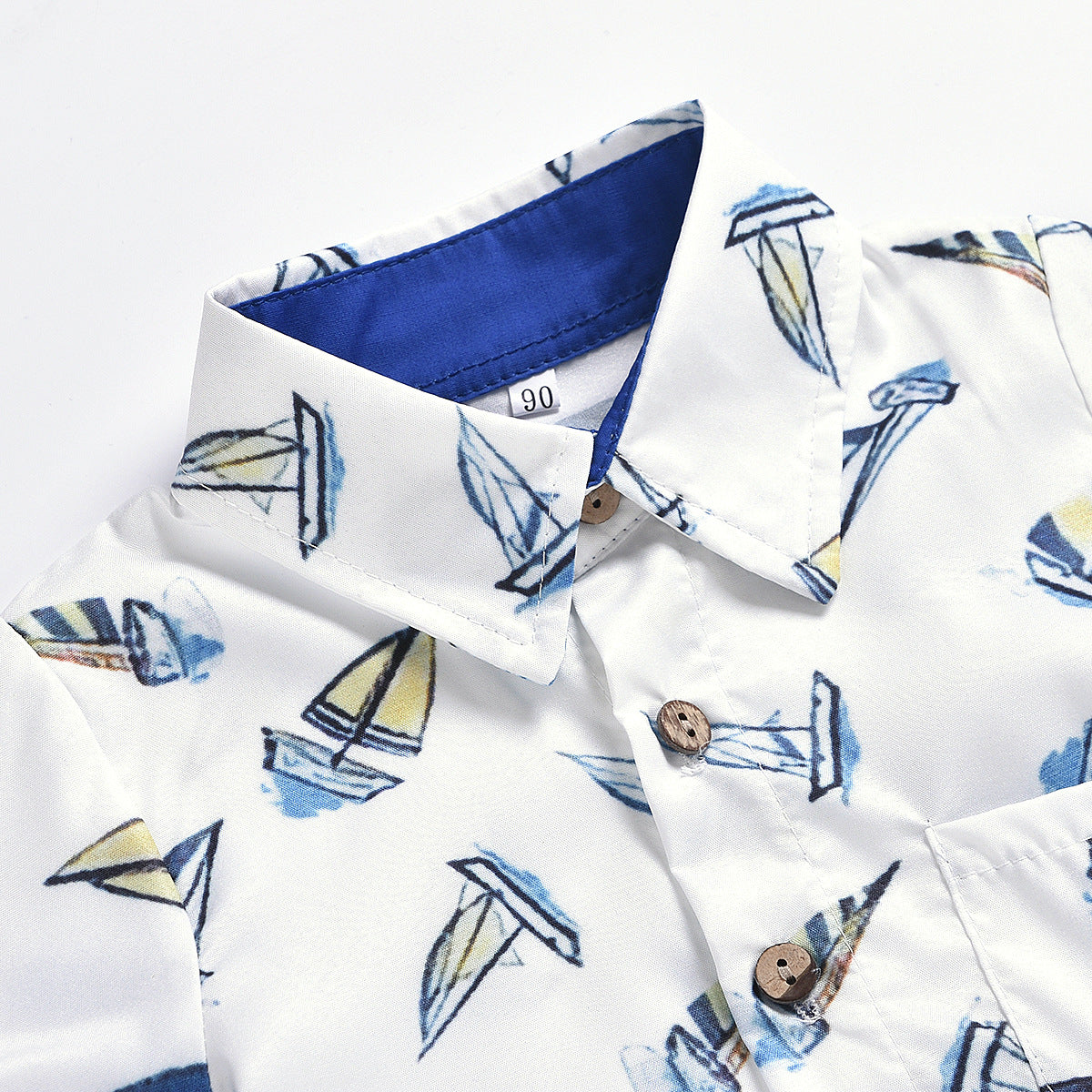爽やかに映える セーリングヨット柄 半袖シャツ&ショートパンツセット(90~130cm)