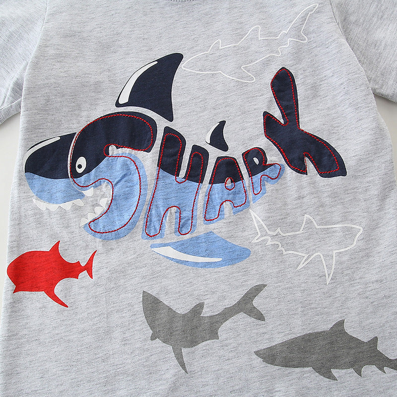 サメ柄がかっこいい 男の子サマーセットアップ(半袖Tシャツ+ショートパンツ)