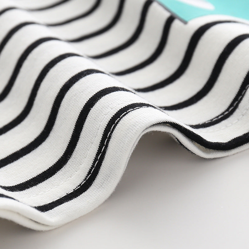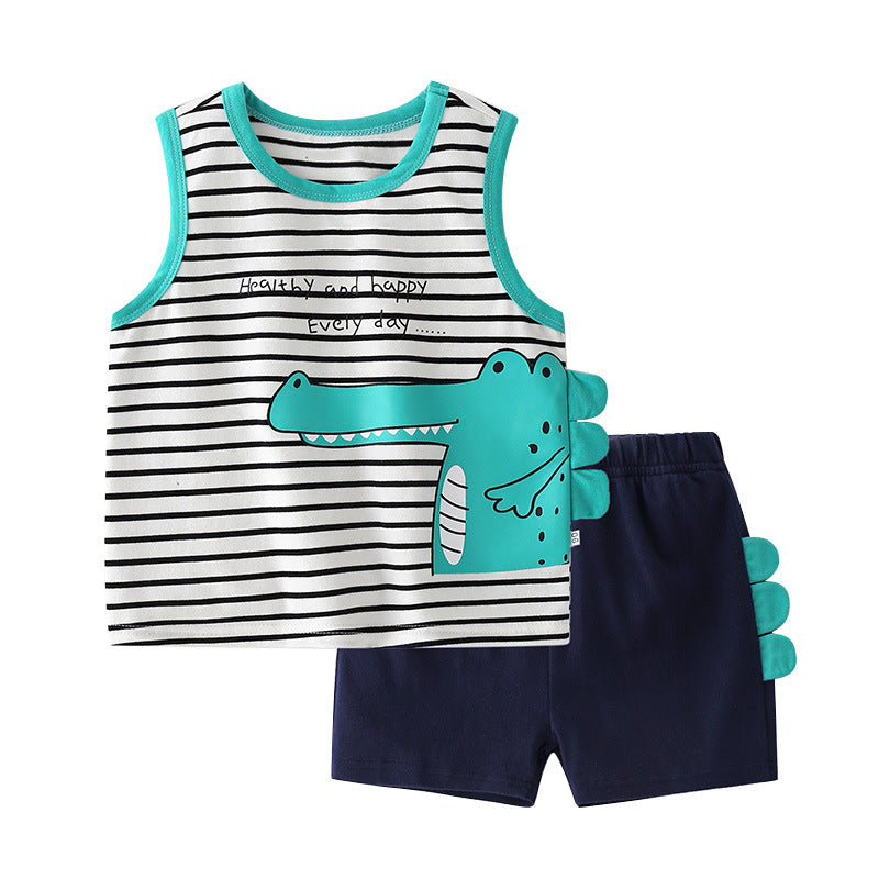 元気いっぱいの毎日を、涼しく軽やかに。 ボーダー柄に、立体感のあるワニモチーフが目を引く上下セットです。1セットでコーデが決まり、外遊びやおでかけにも取り入れやすい一枚に仕上がっています。