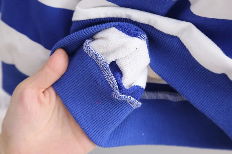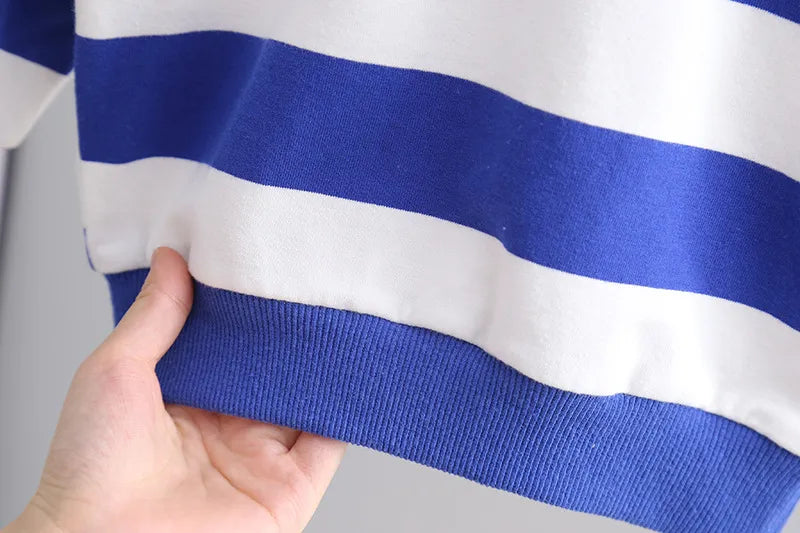 ぱっと目を惹くボーダーとデニムの組み合わせで、子どもらしい可愛さときちんと感を両立したセットです。