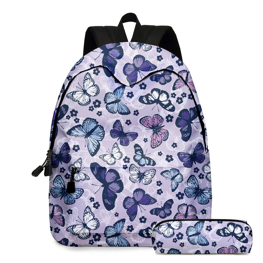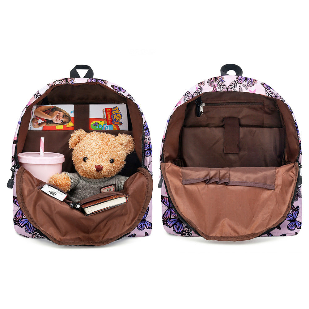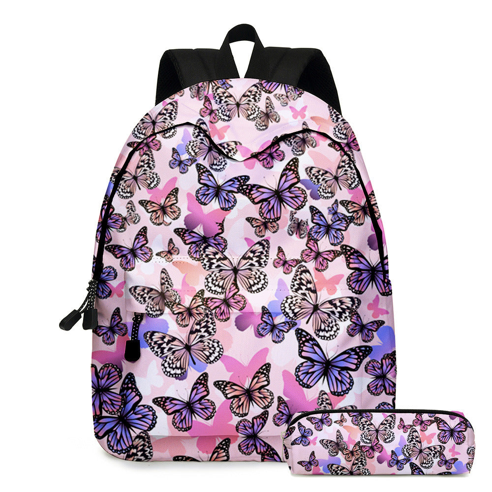 【30×17×40cm・約0.4kg】蝶柄プリントのキッズバックパック2点セット|通気性&14インチ差し込みで通学・外出が整う
