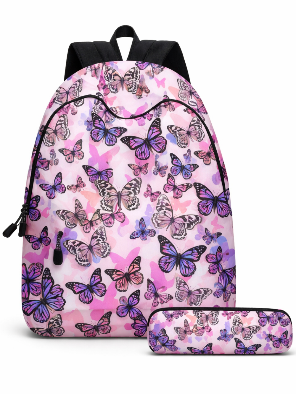 - ➤ 蝶柄バックパック: 目を引くプリントで、毎日の持ち歩きに前向きな気分を添える