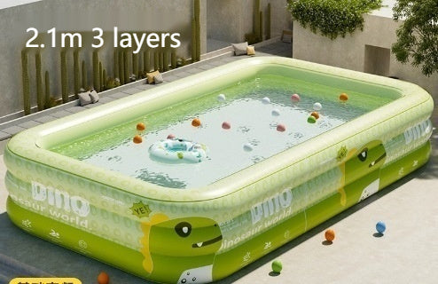 恐竜デザイン 日よけシェード付きインフレータブルプール 3層PVC・排水口付き 家庭用おうちプール(ドラゴンベビーグリーン/150・180・210cm)