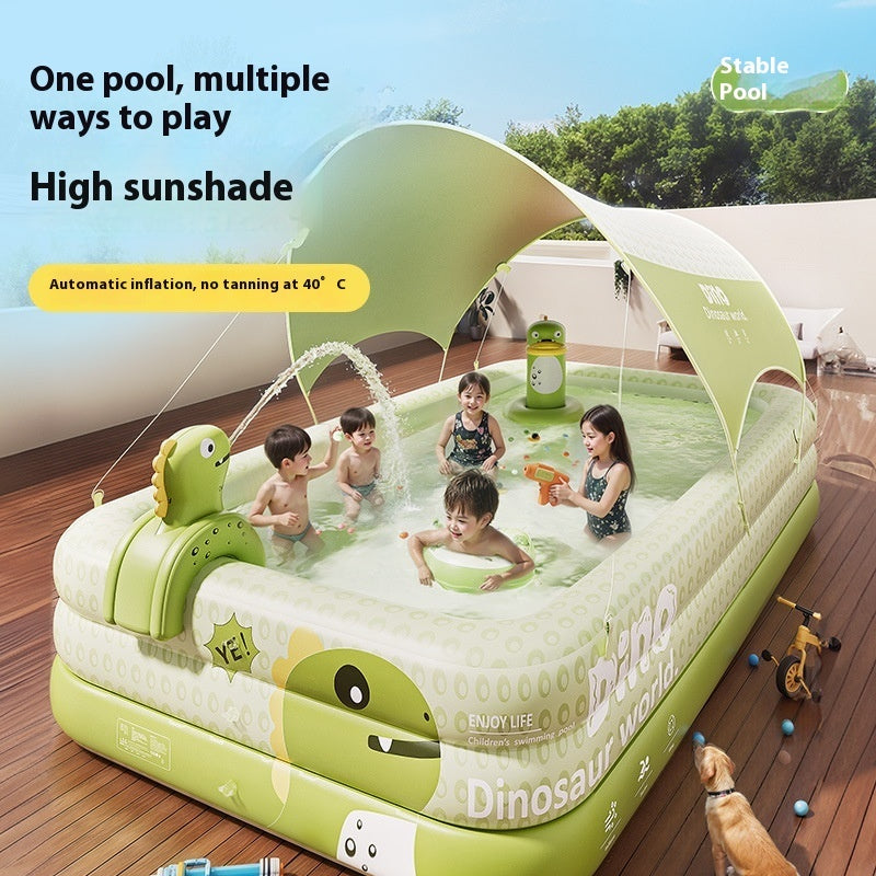 恐竜ワールド日よけ付きインフレータブルプールで、夏の冒険をもっと楽しく