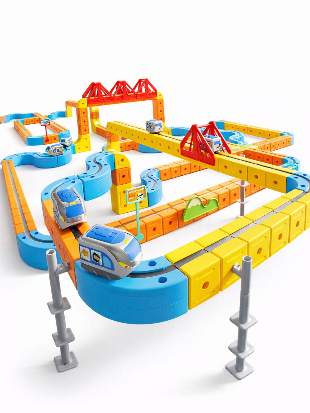 電動マグネット式ハイスピードレールトラックは、強力な吸着パーツと磁力走行により、 床・壁・家具・ガラス面まで自由に使って立体コースを作れる3D知育トラックです。