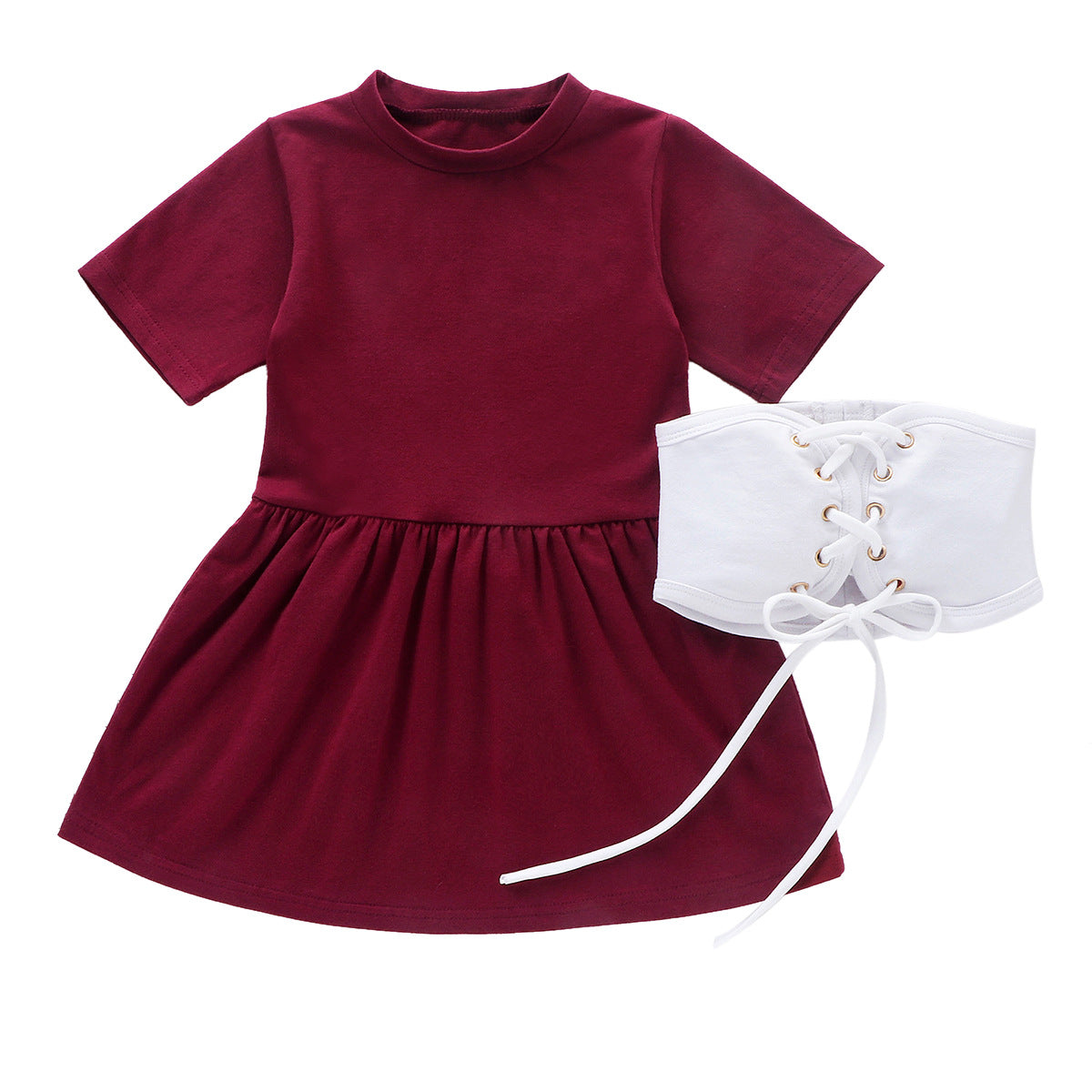 白レースアップベルト付き 半袖ワンピース(90・100・110・120・130cm)