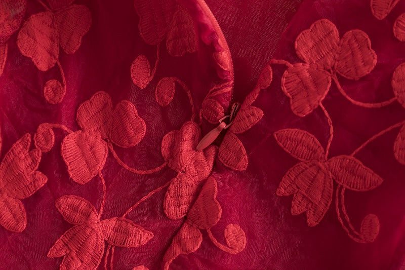 - ◈ バタフライ刺繍: 立体感のあるレース表情で華やかな印象に
