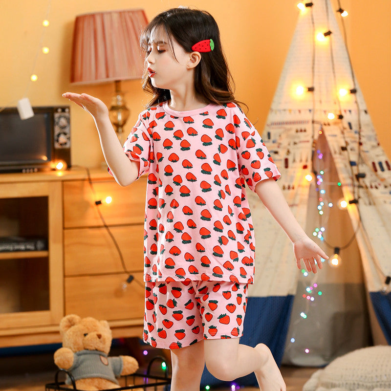さらっと吸汗で夏も快適 女の子半袖パジャマ上下セット カートゥーンプリント コットン 90~175cm