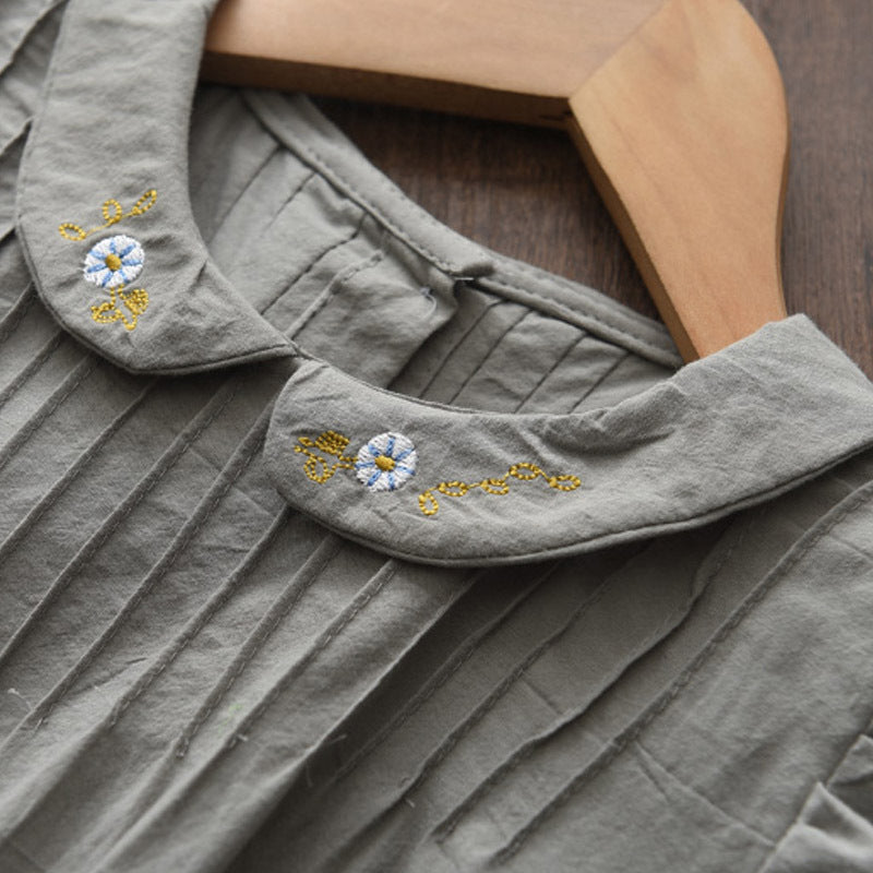 こころを包み込むやさしい着心地で、毎日のコーデに安心をプラス。 無地ワンピースだからこそ、襟元の刺繍とふんわり袖がやさしく引き立つ一枚です。