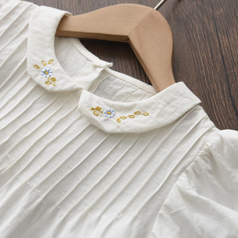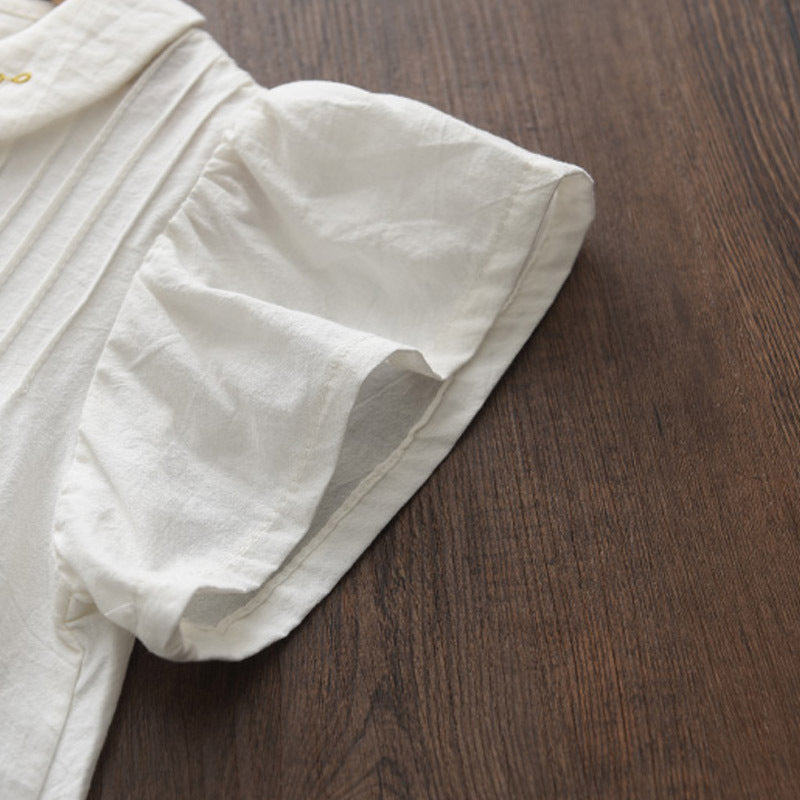 刺繍入りドール襟が上品に映える 女の子フライングスリーブワンピース 無地コットン 100~140cm