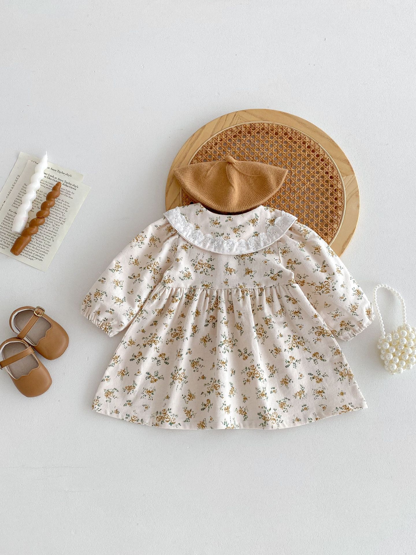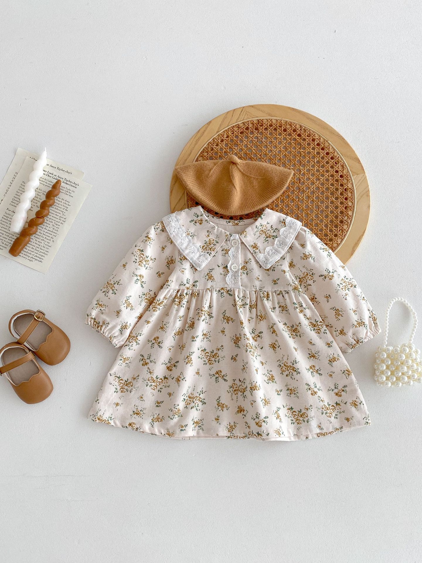 ガールズフローラルプリンセスドレス 綿100% 長袖フォトドレス | Girl’s Fashion Floral Princess Dress 100% Cotton