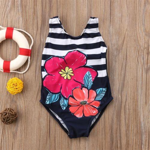 花柄ボーダー 女の子ワンピース水着|大ぶりフラワー・6〜12ヶ月〜5歳