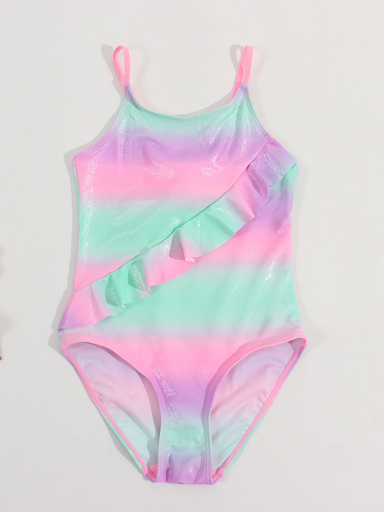 グラデーションラメ調 ガールズワンピース水着で、夏の冒険をもっと楽しく。