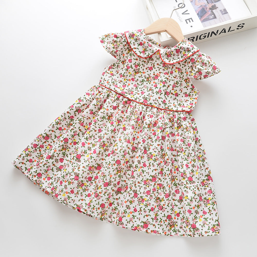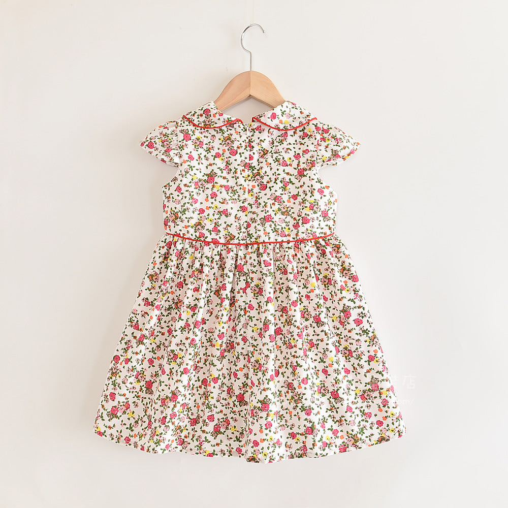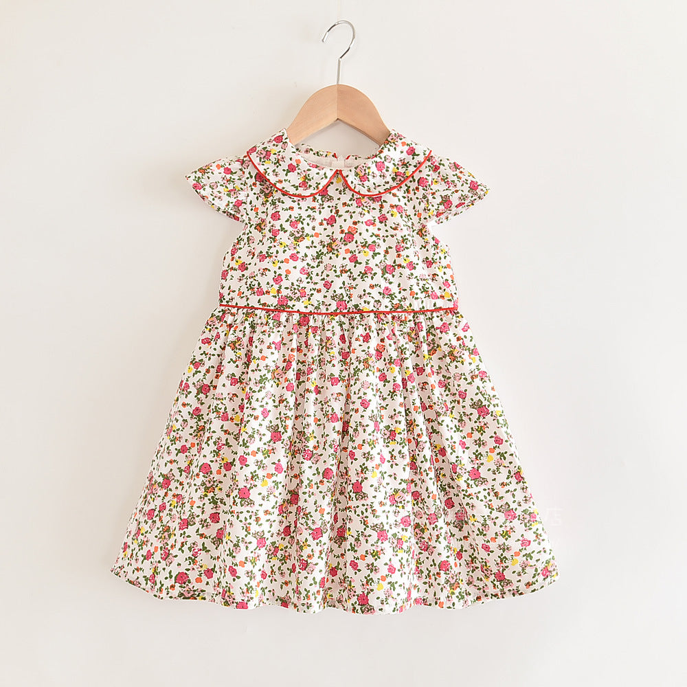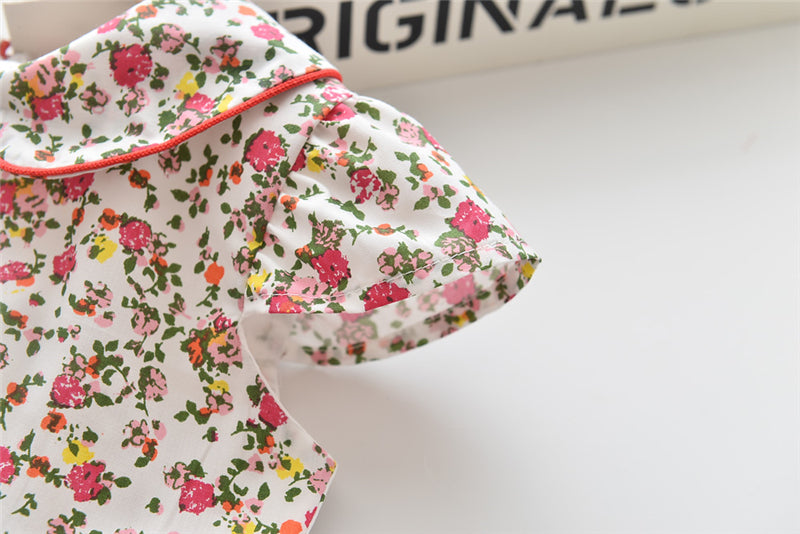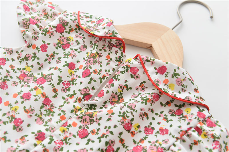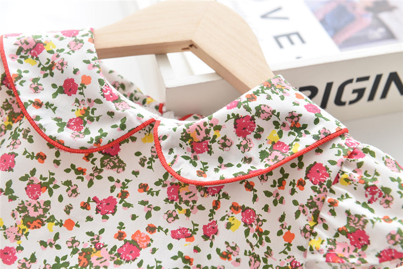 上品な襟付きでおすましコーデが完成する 女の子フリル袖ワンピース 小花柄 コットン カジュアル 110~120cm